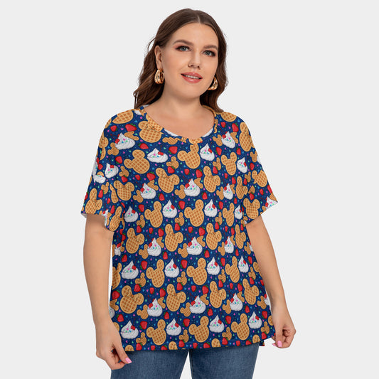 Waffles Women's Plus Size Short Sleeve T-shirt With Sleeve Loops
