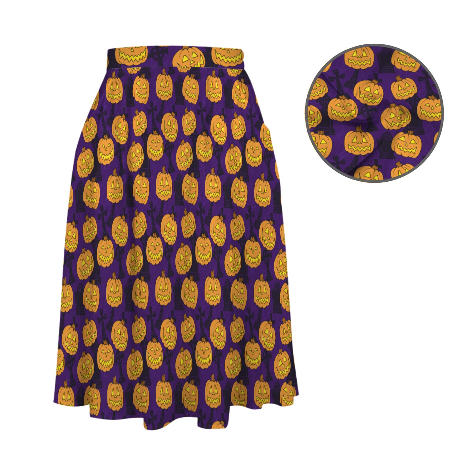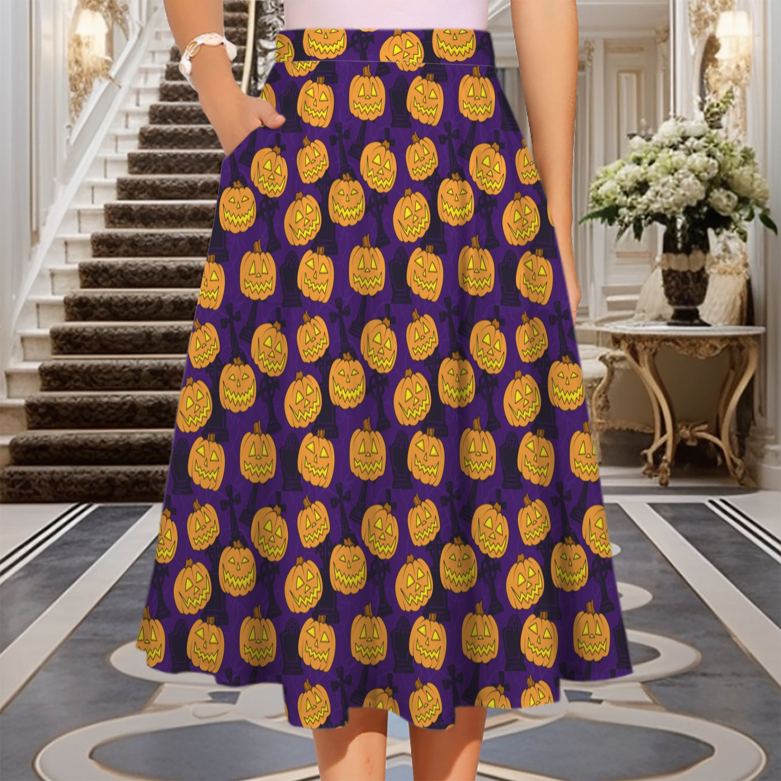 Scary Pumpkins Elastic Waist Midi Skirt With Pockets