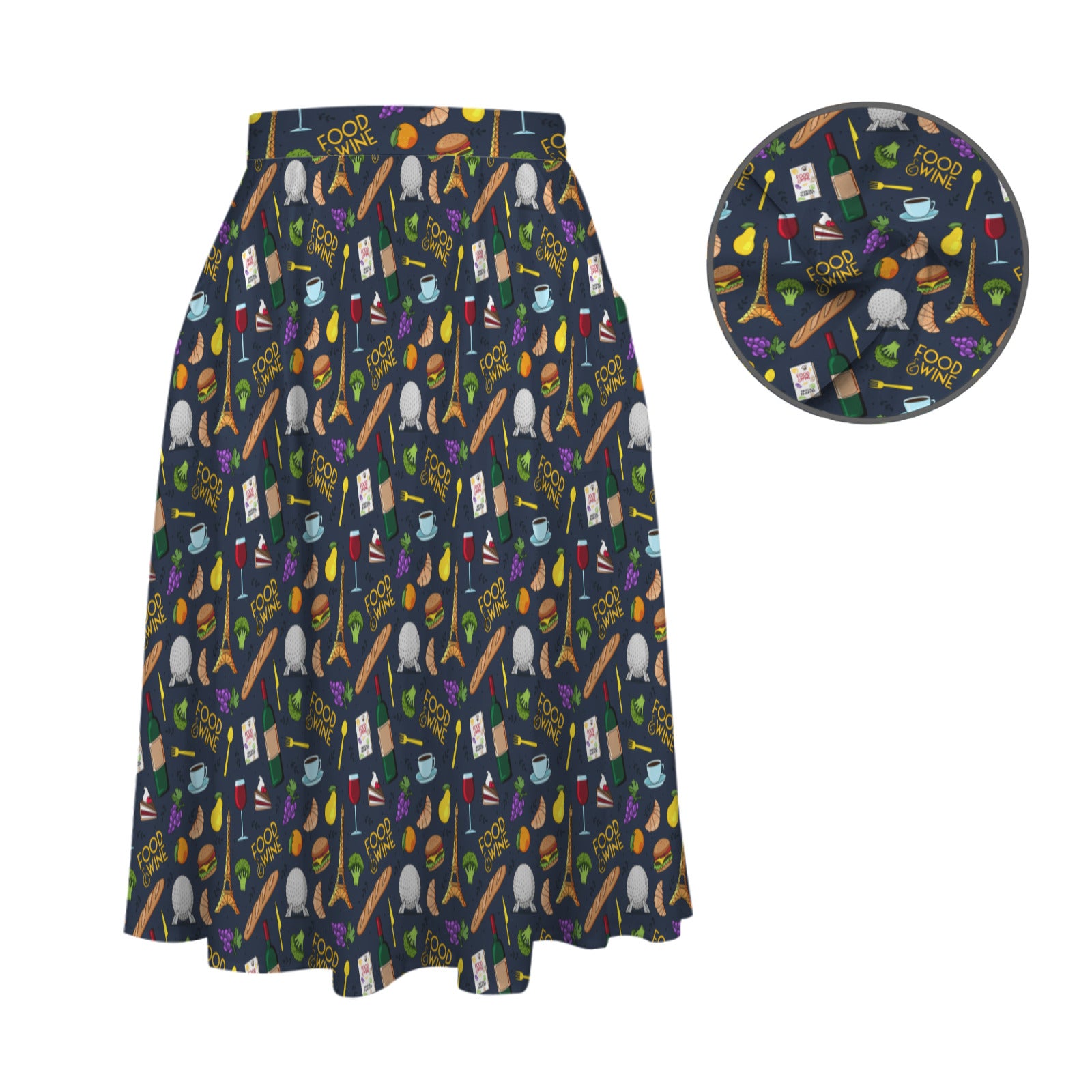 Food & Wine Elastic Waist Midi Skirt With Pockets