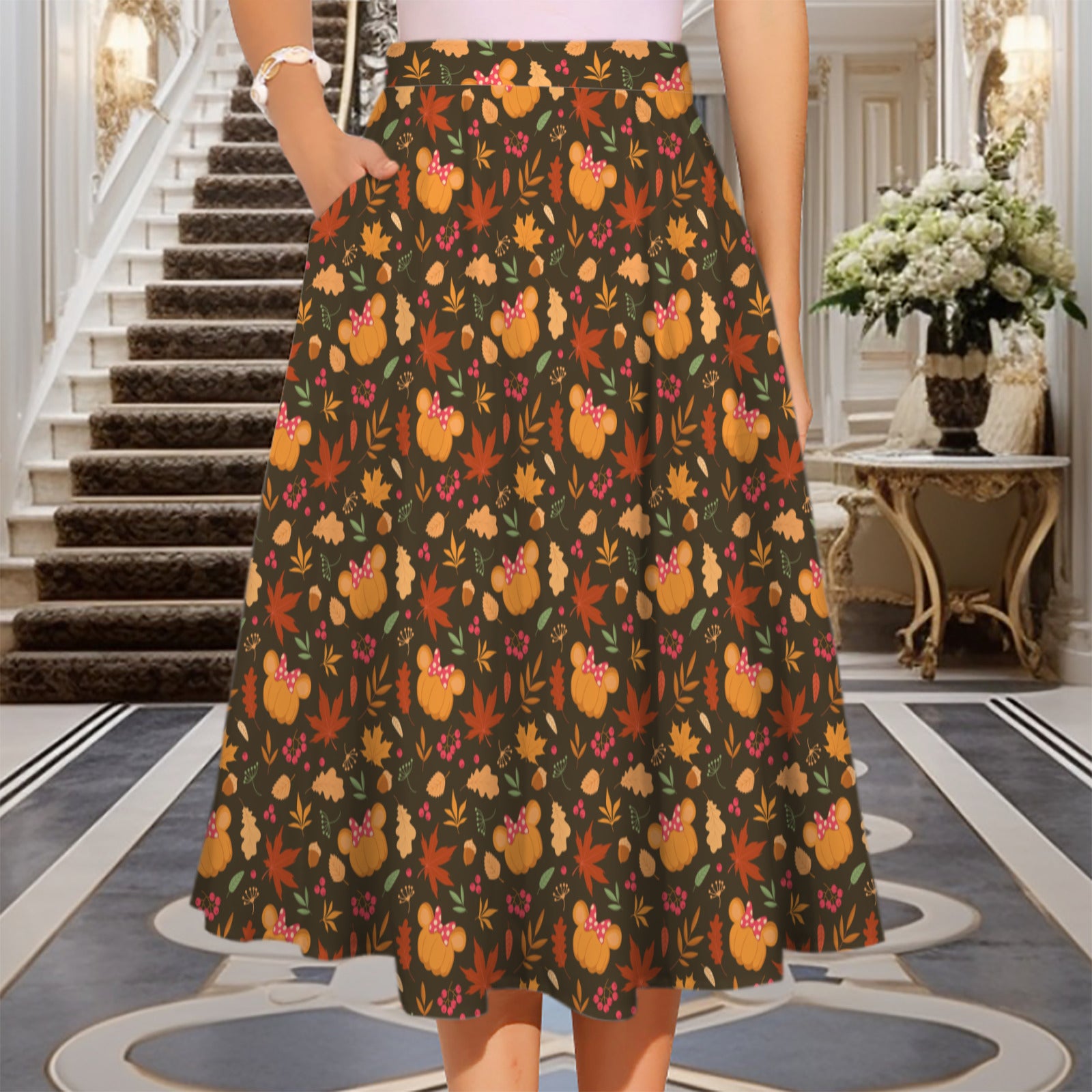 Pumpkins Elastic Waist Midi Skirt With Pockets
