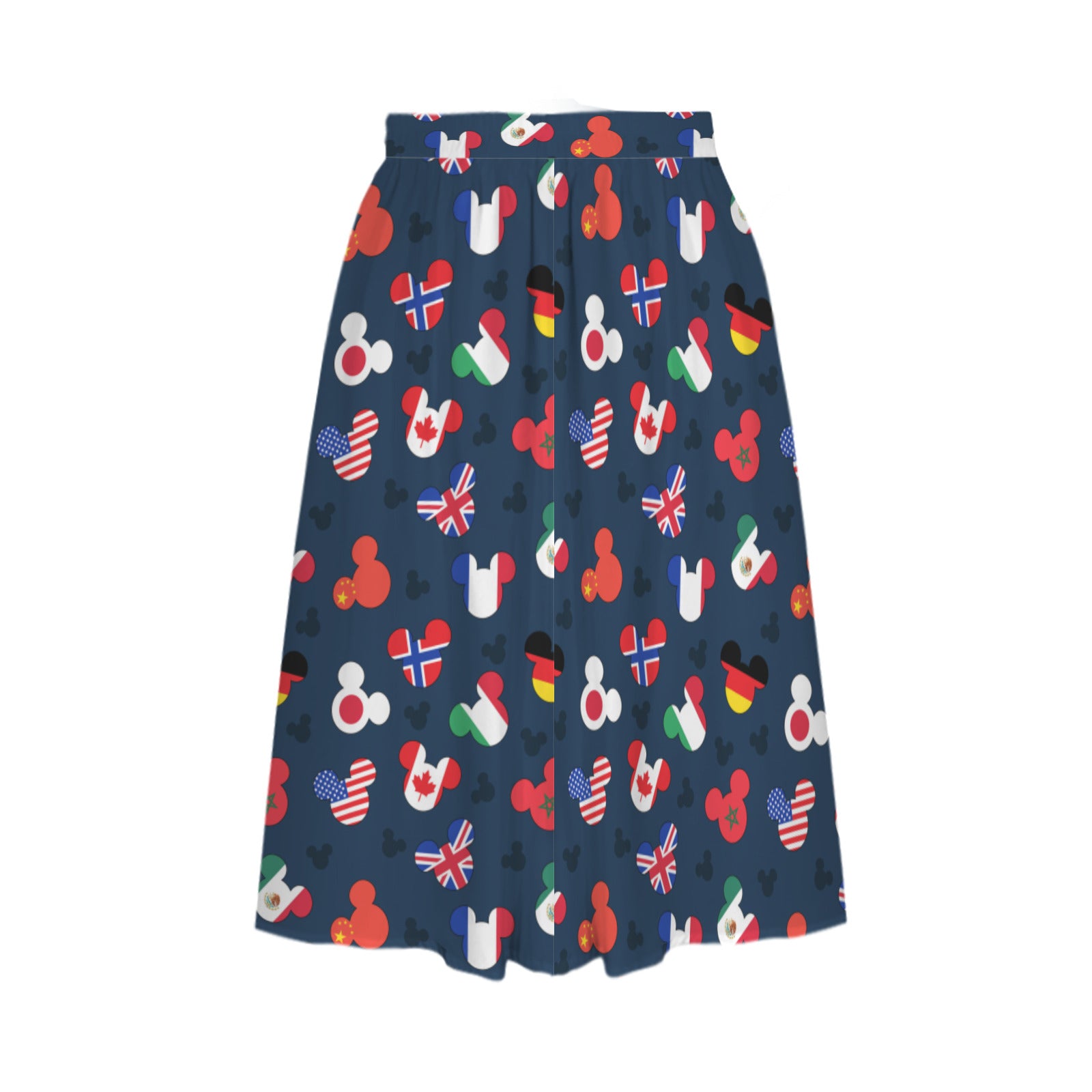 Mickey Flags Elastic Waist Midi Skirt With Pockets
