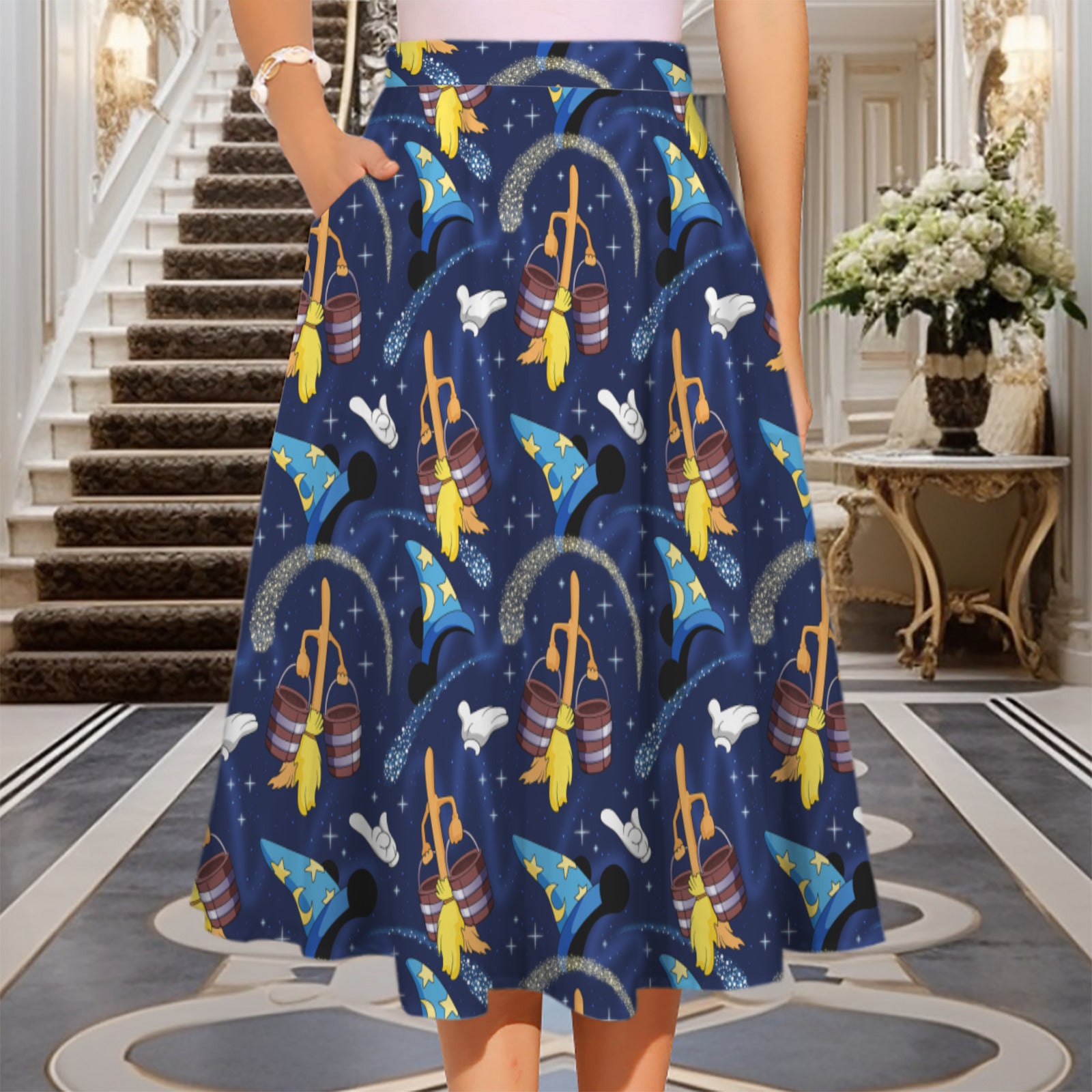 Sorcerer Elastic Waist Midi Skirt With Pockets