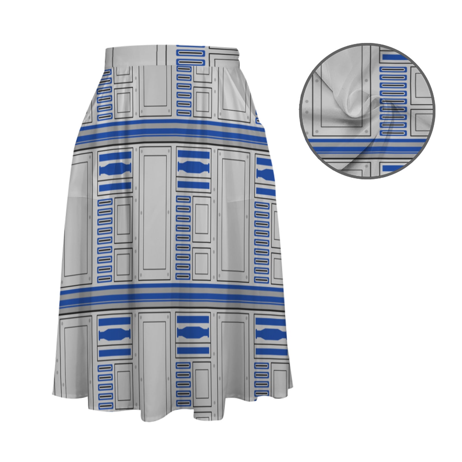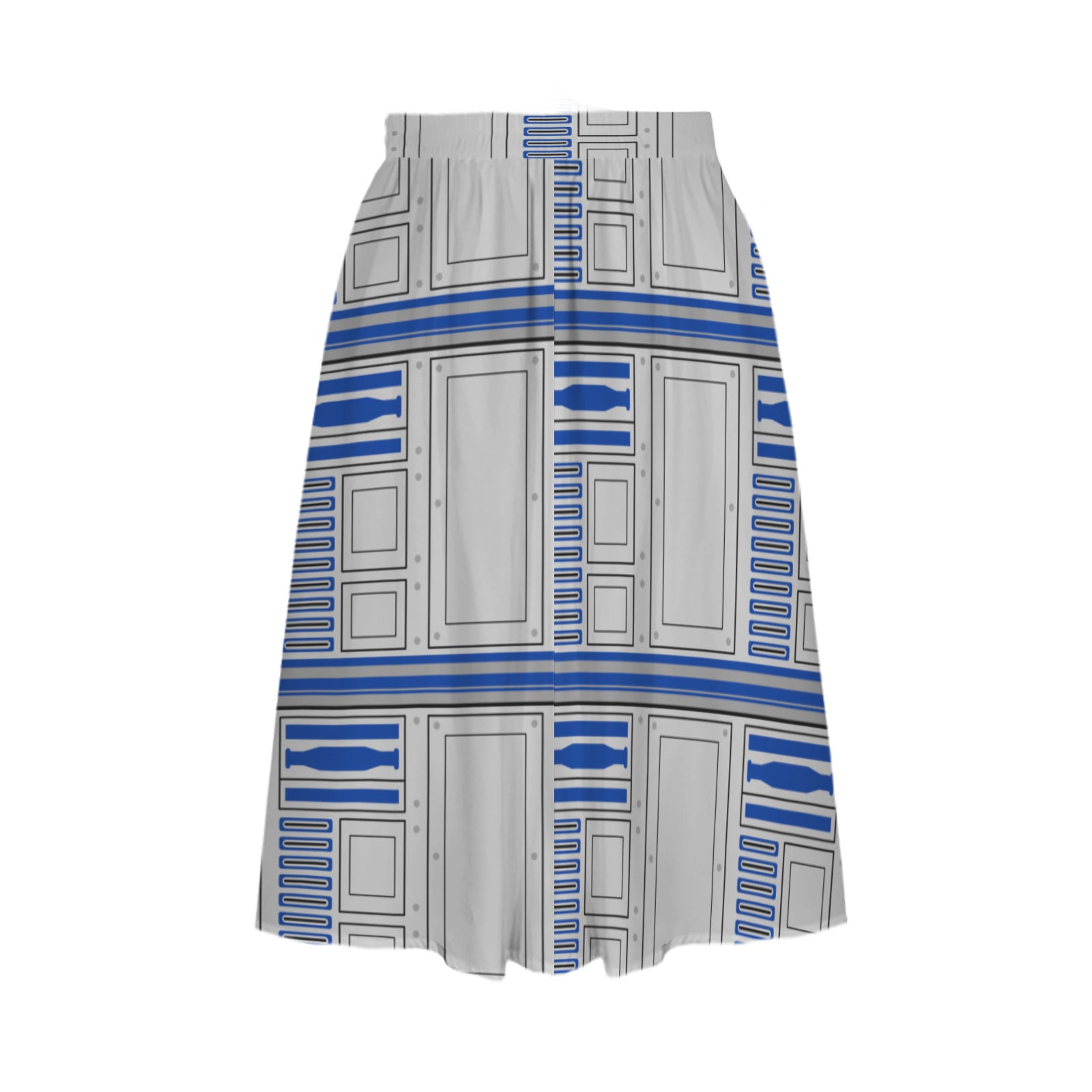 R2D2 Elastic Waist Midi Skirt With Pockets