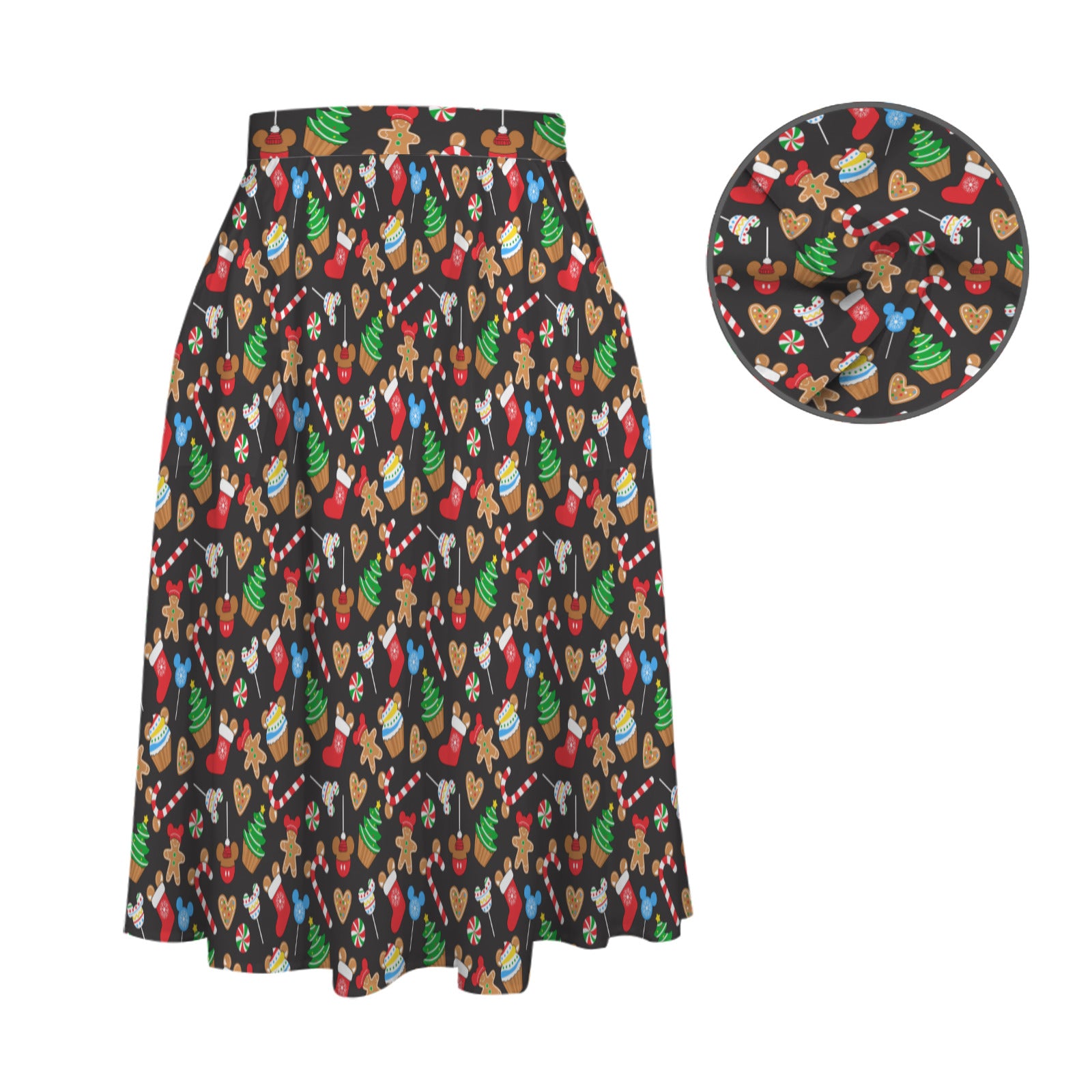 Christmas Treats Elastic Waist Midi Skirt With Pockets
