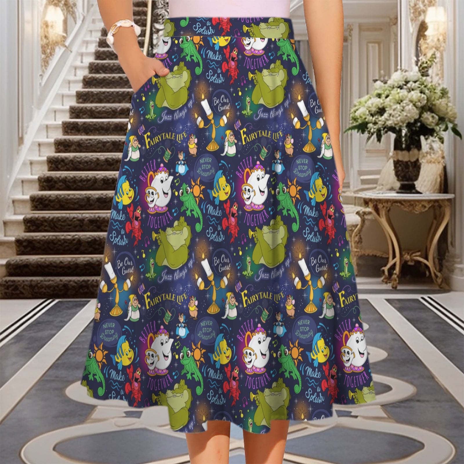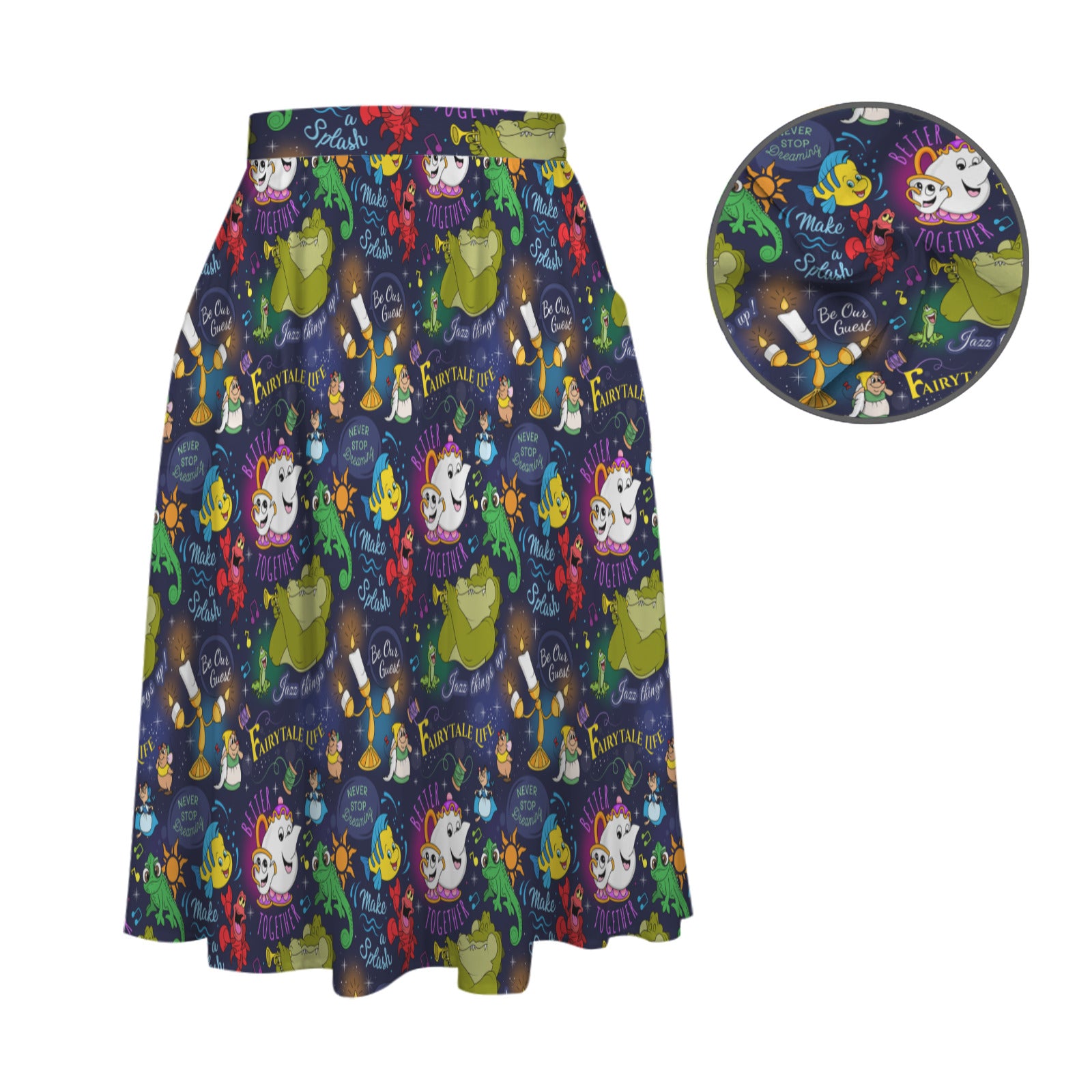 • Product Features: Elastic stretch waistband for a comfortable, adjustable fit and two functional side pockets. Falls at a flattering midi length.