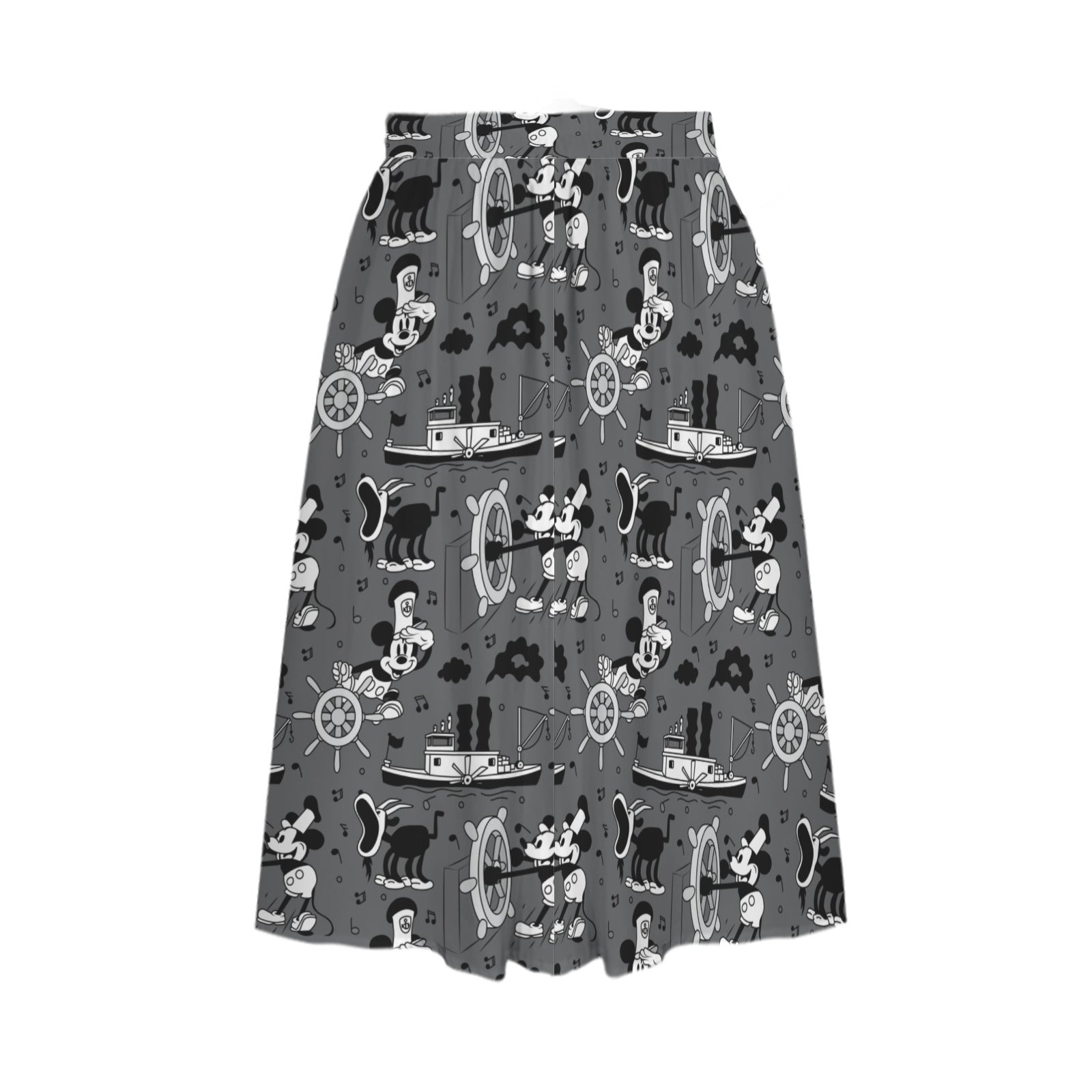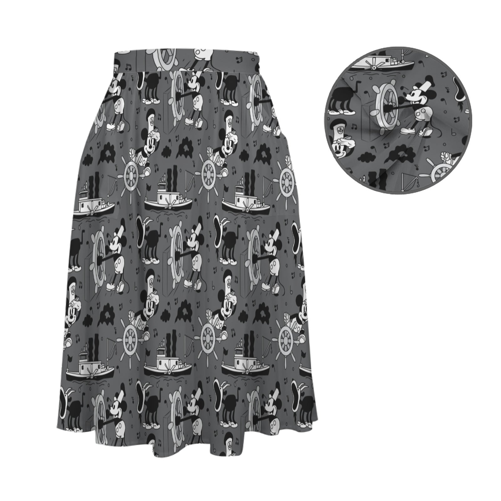 Steamboat Mickey Elastic Waist Midi Skirt With Pockets