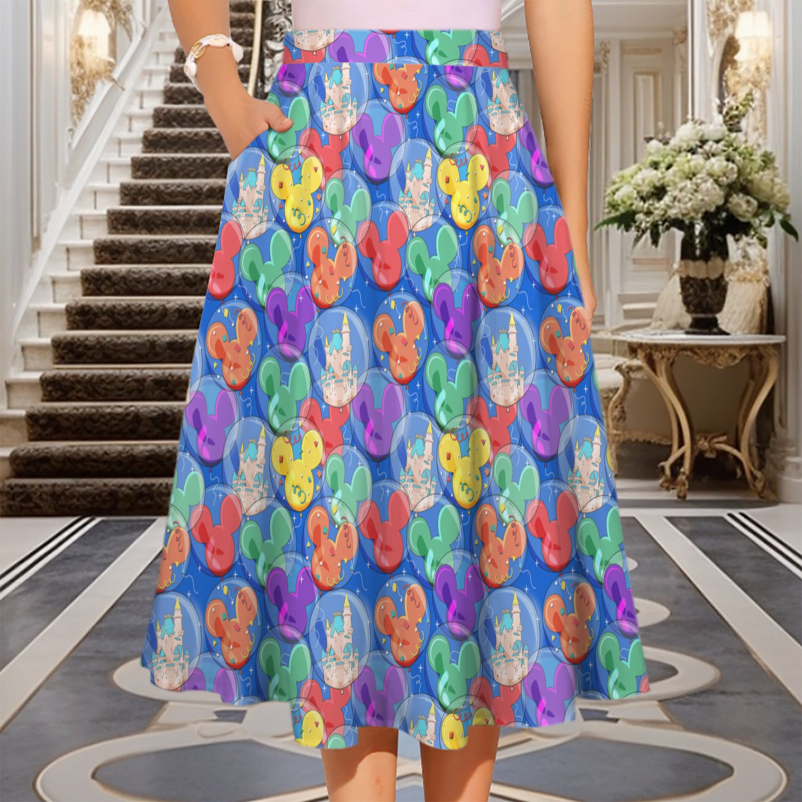 Balloon Collector Elastic Waist Midi Skirt With Pockets