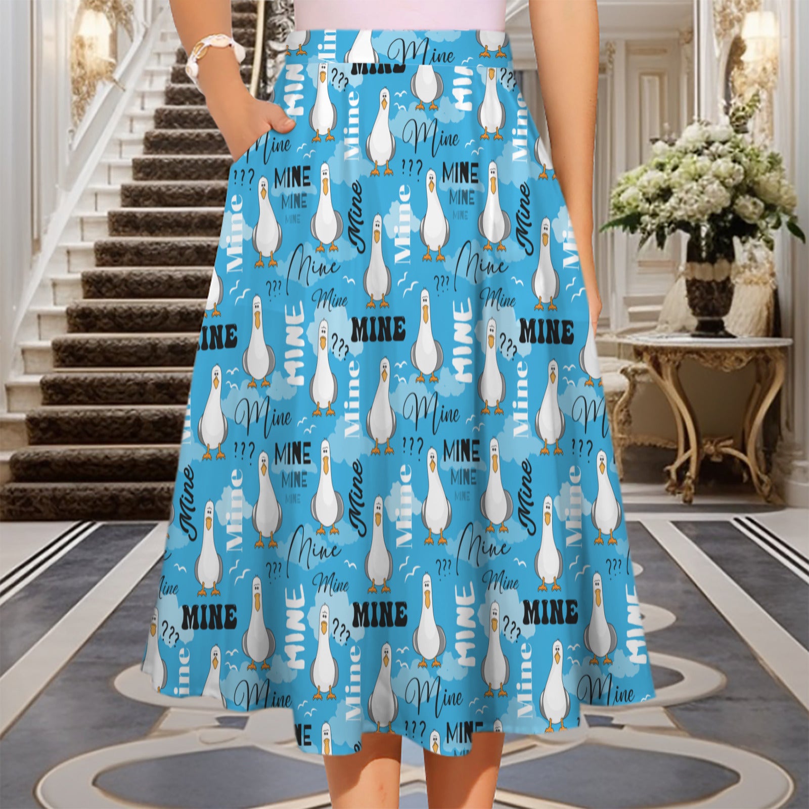 • Product Features: Elastic stretch waistband for a comfortable, adjustable fit and two functional side pockets. Falls at a flattering midi length.