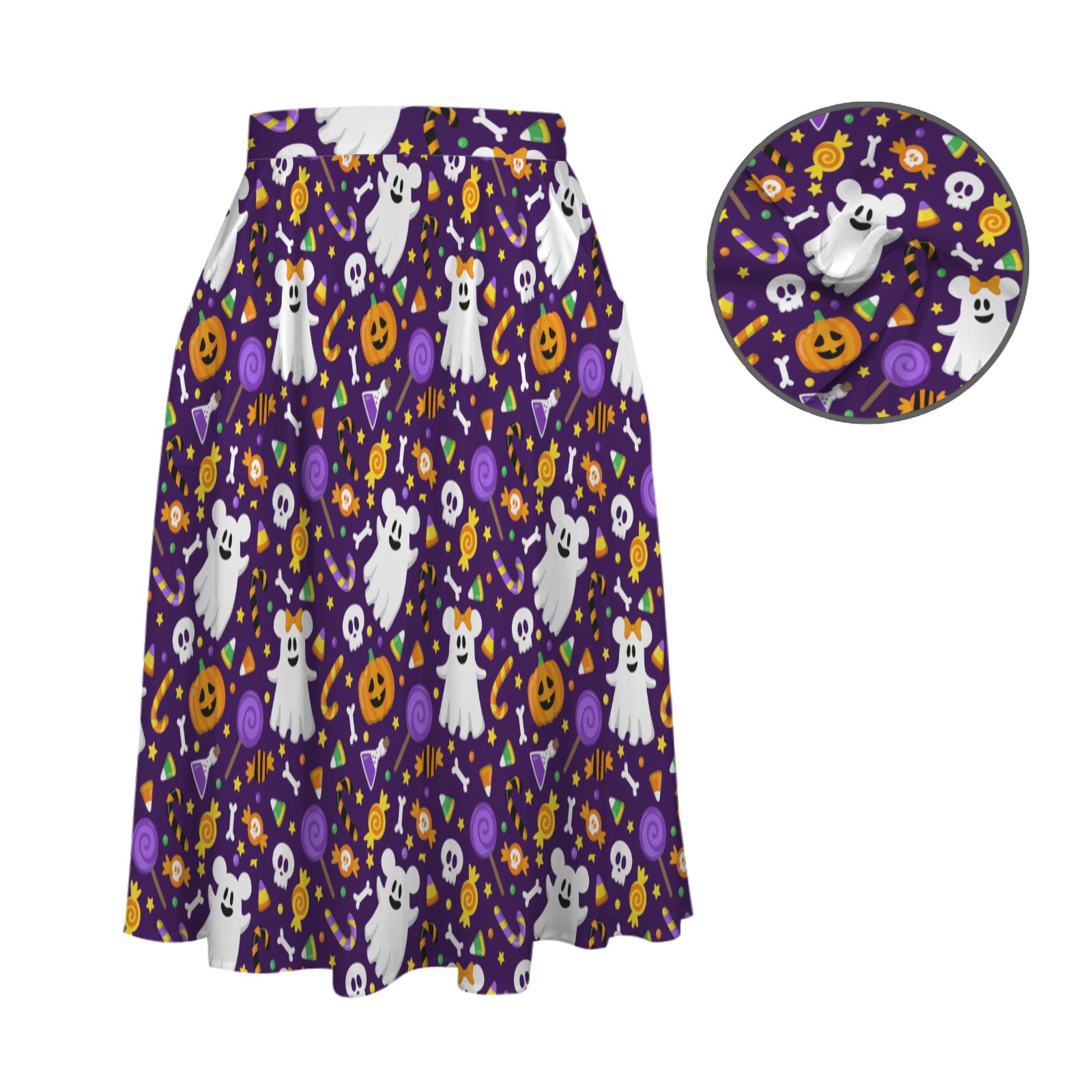 Spooky Mickey Elastic Waist Midi Skirt With Pockets