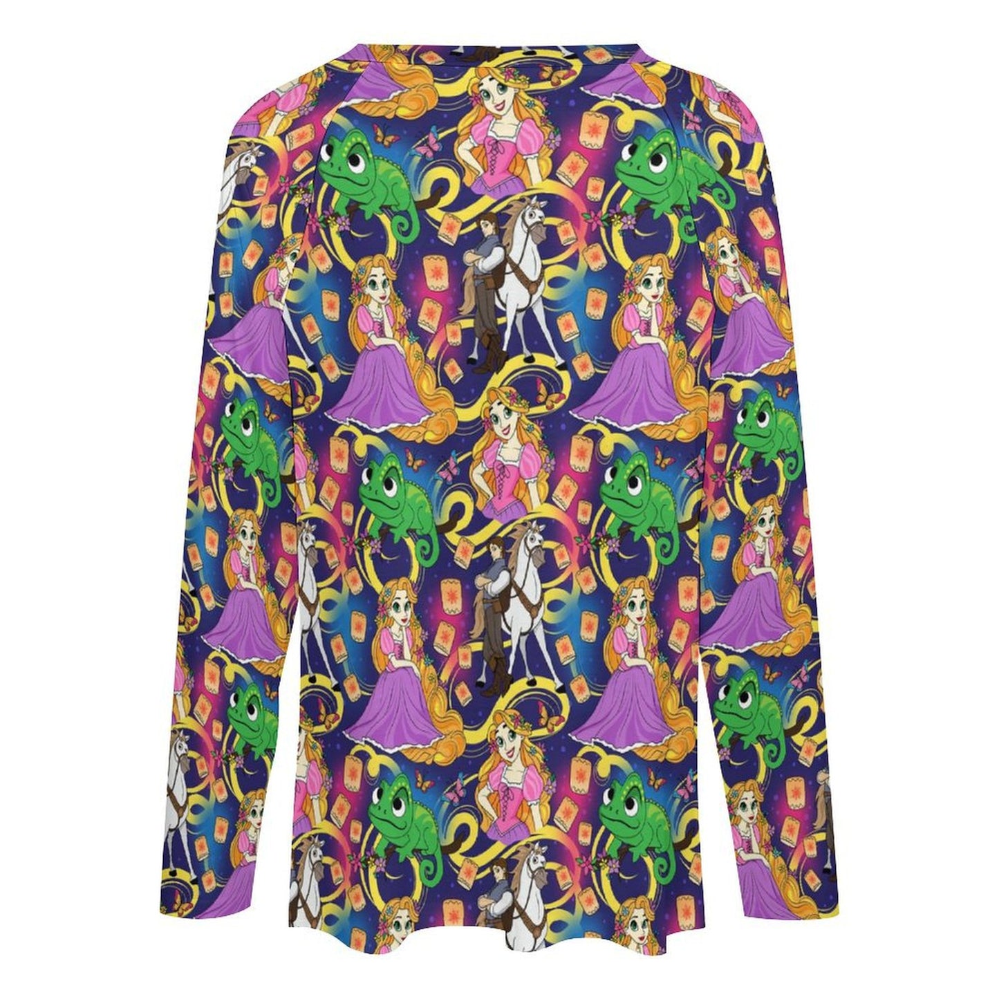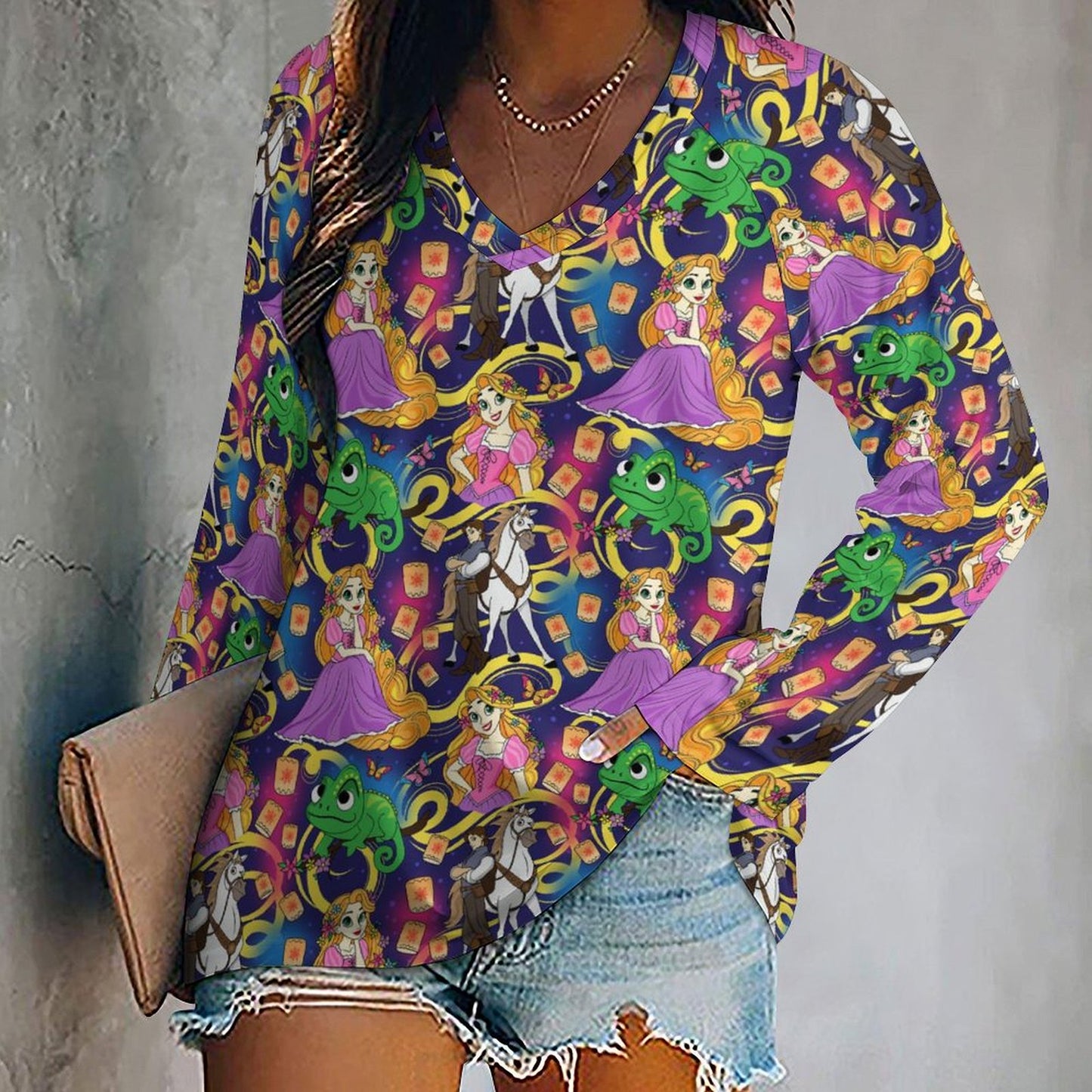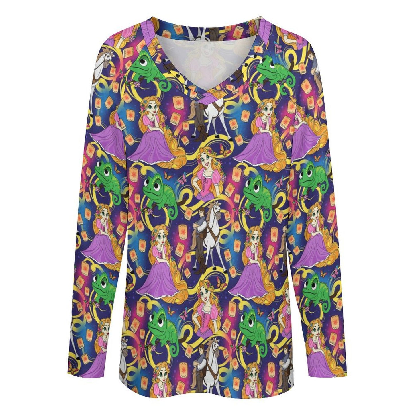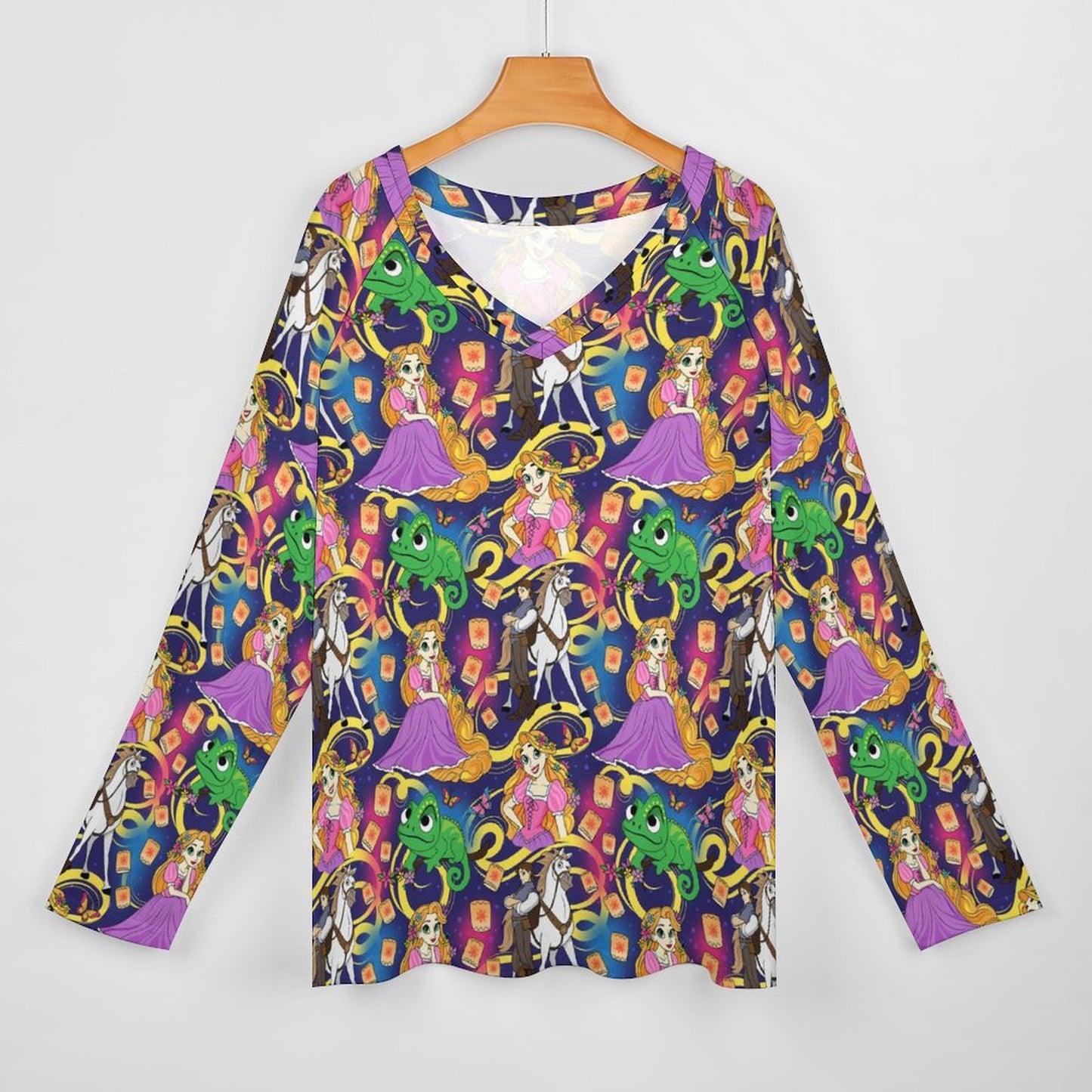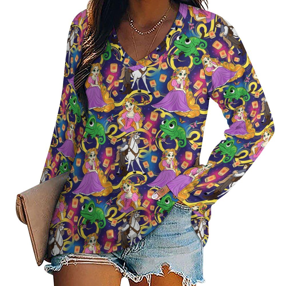 Disney Tangled Rapunzel At Last I See The Light Long Sleeve Loose V-Neck Tee