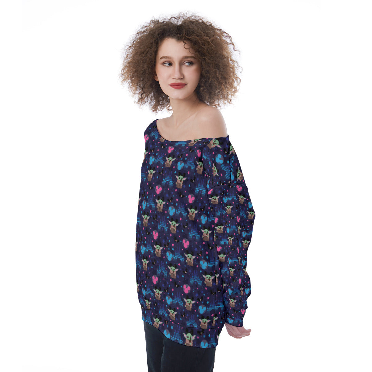 Baby Yoda Castles Oversized Women's Off-Shoulder Sweatshirt