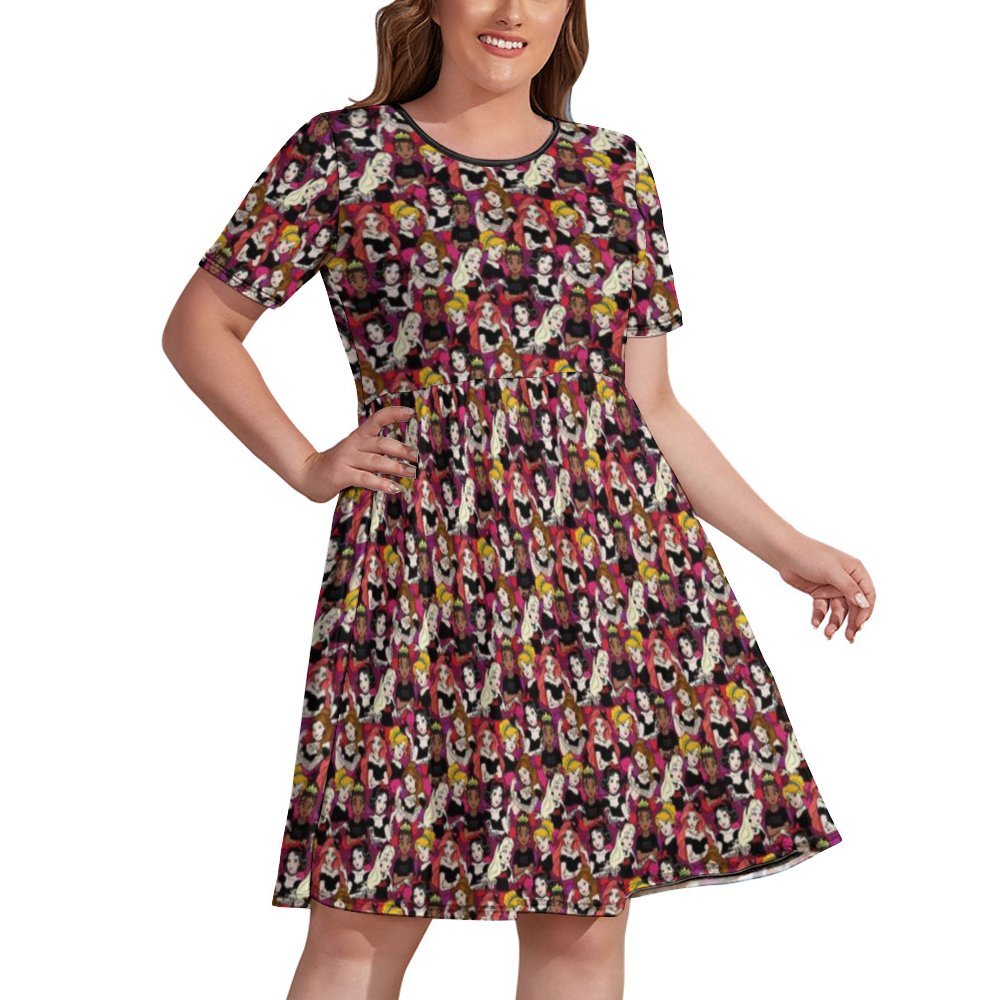 Introducing the enchanting Disney-inspired plus-size round neck knee-length dress – a perfect blend of magic, comfort, and style! Crafted with the utmost care and attention to detail, this delightful dress is designed to make every wearer feel like a true princess.