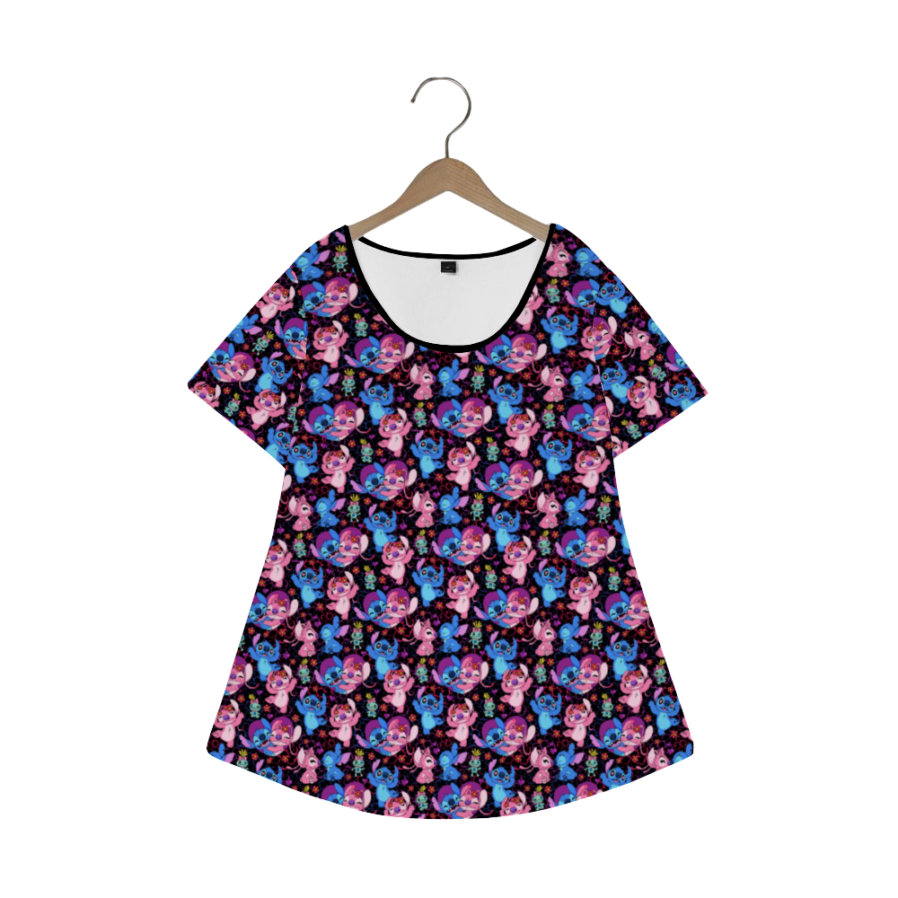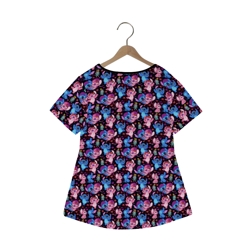 Disney Lilo And Stitch Angel Besties Women's Crew Neck Loose Tunic
