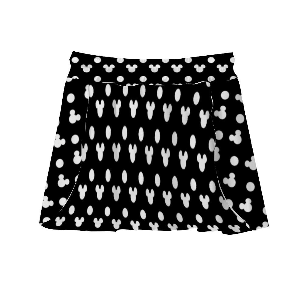 Black With White Mickey Dots Athletic Skirt With Built In Shorts
