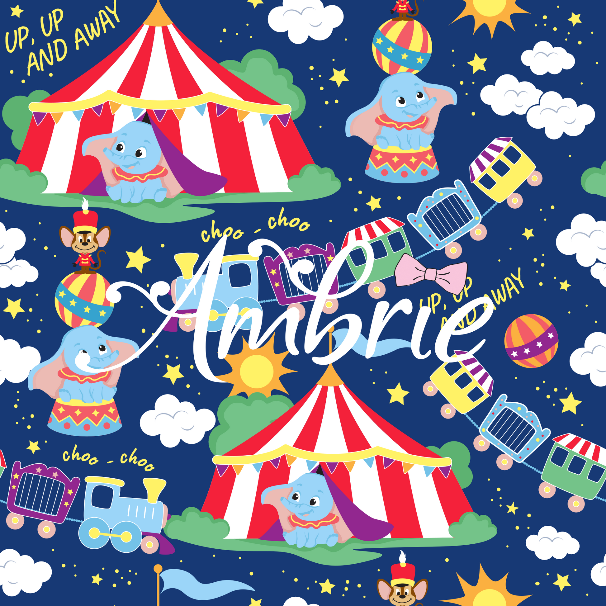 Dumbo Seamless Pattern, Magical Cartoon Seamless pattern, Fabric Sublimation
