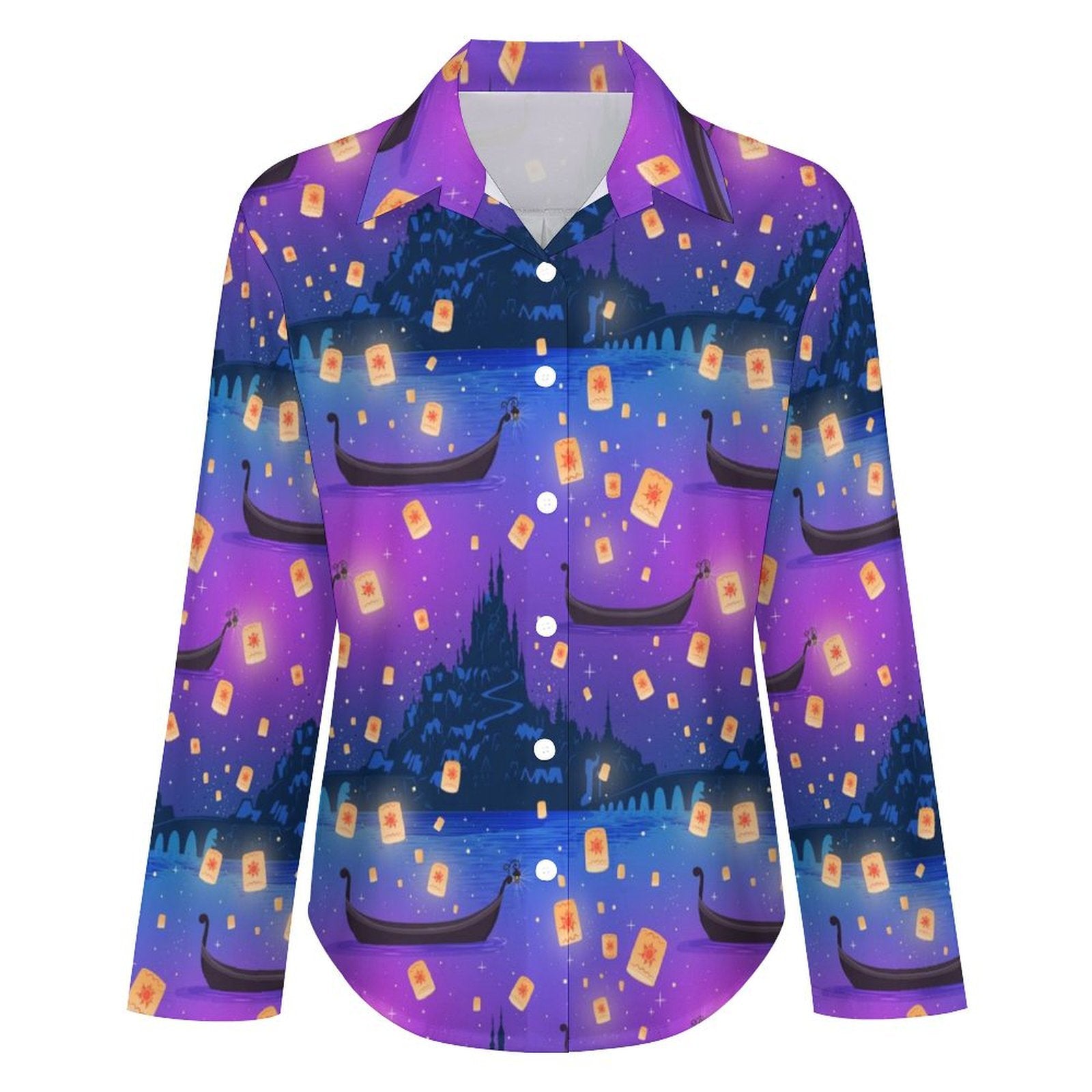 Disney Tangled Rapunzel Floating Lanterns Long Sleeve Button Up Blouse