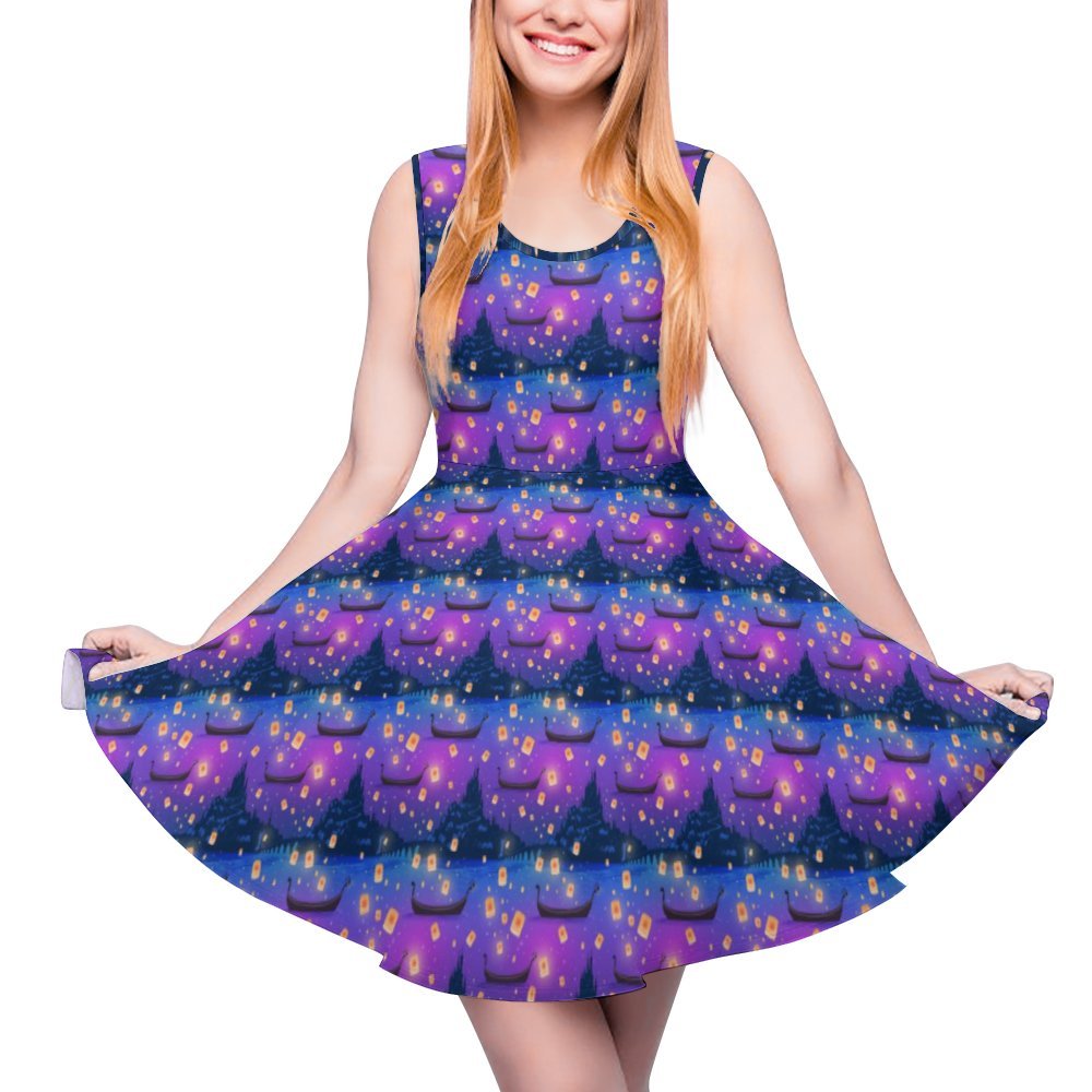 Disney Tangled Rapunzel Floating Lanterns Women's Sleeveless Round Neck Skater Dress