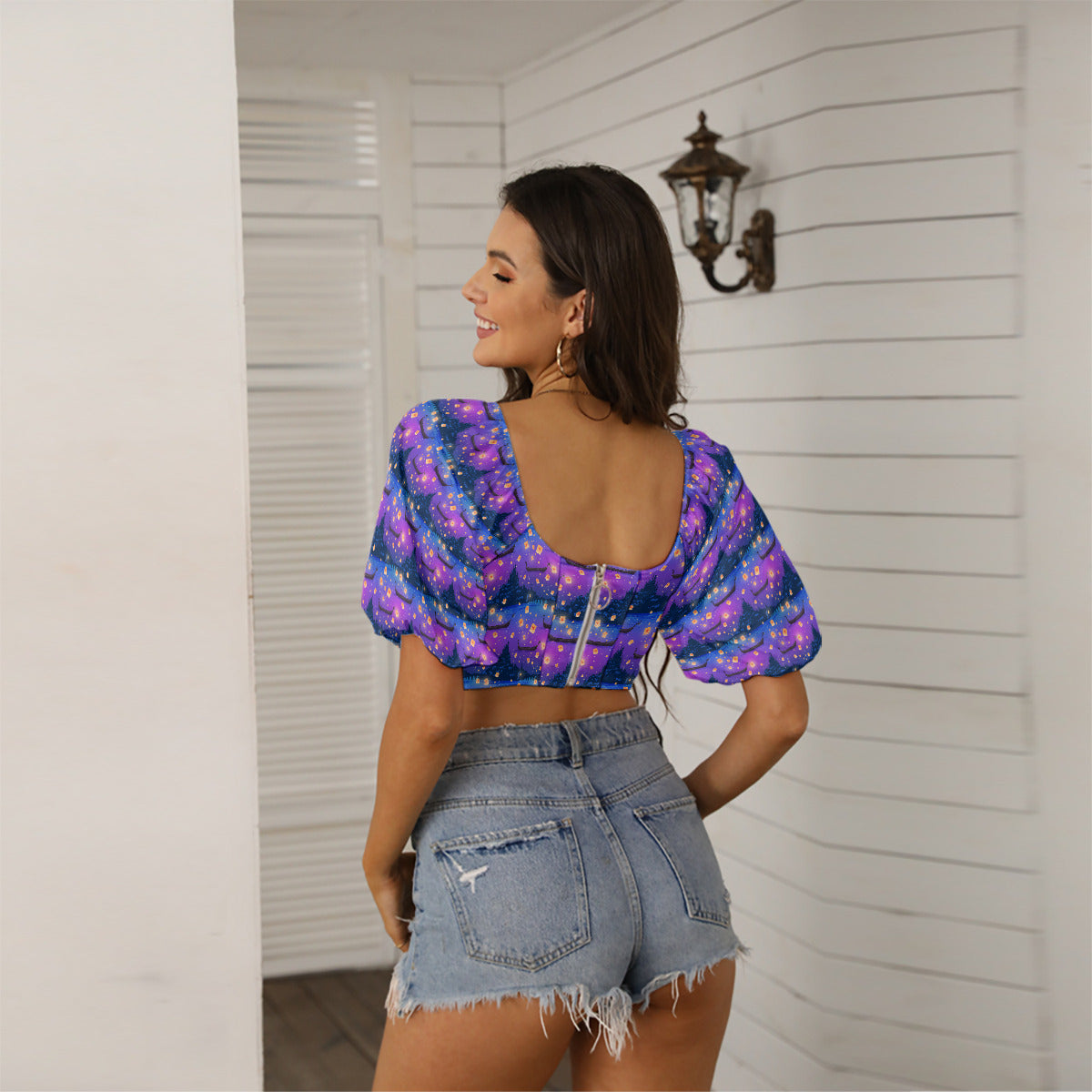 Floating Lanterns Women's Square Collar Cropped Top With Puff Sleeve