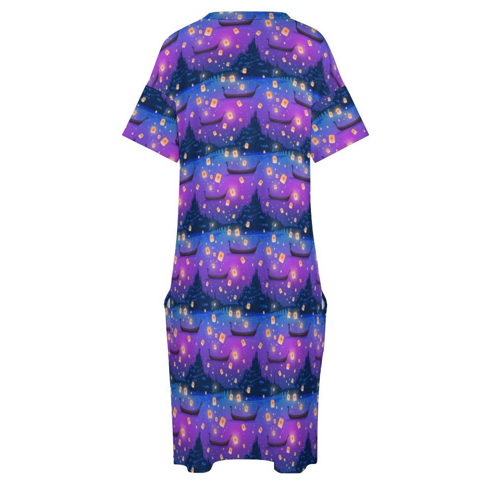 Disney Tangled Rapunzel Floating Lanterns Women's V-neck Loose Dress With Pockets