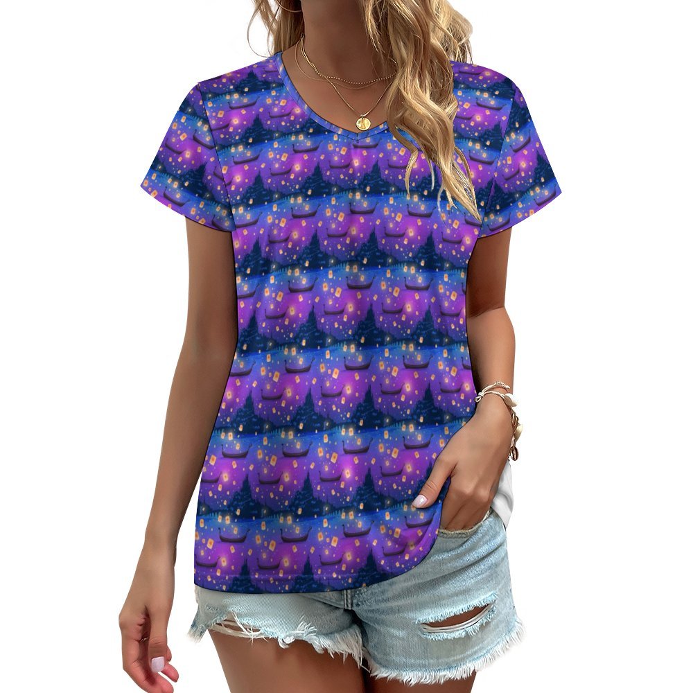 Floating Lanterns Women's V-Neck Short Sleeve T-Shirt