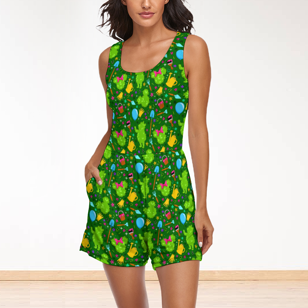 Flower And Garden Women's Sleeveless Jumpsuit Romper With Pockets