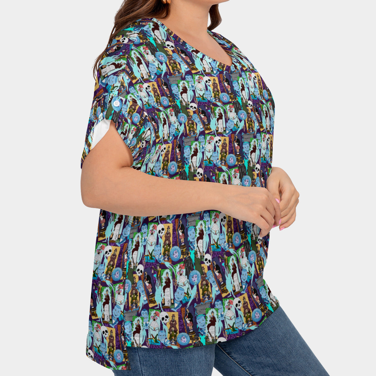 Haunted Mansion Favorites Women's Plus Size Short Sleeve T-shirt With Sleeve Loops