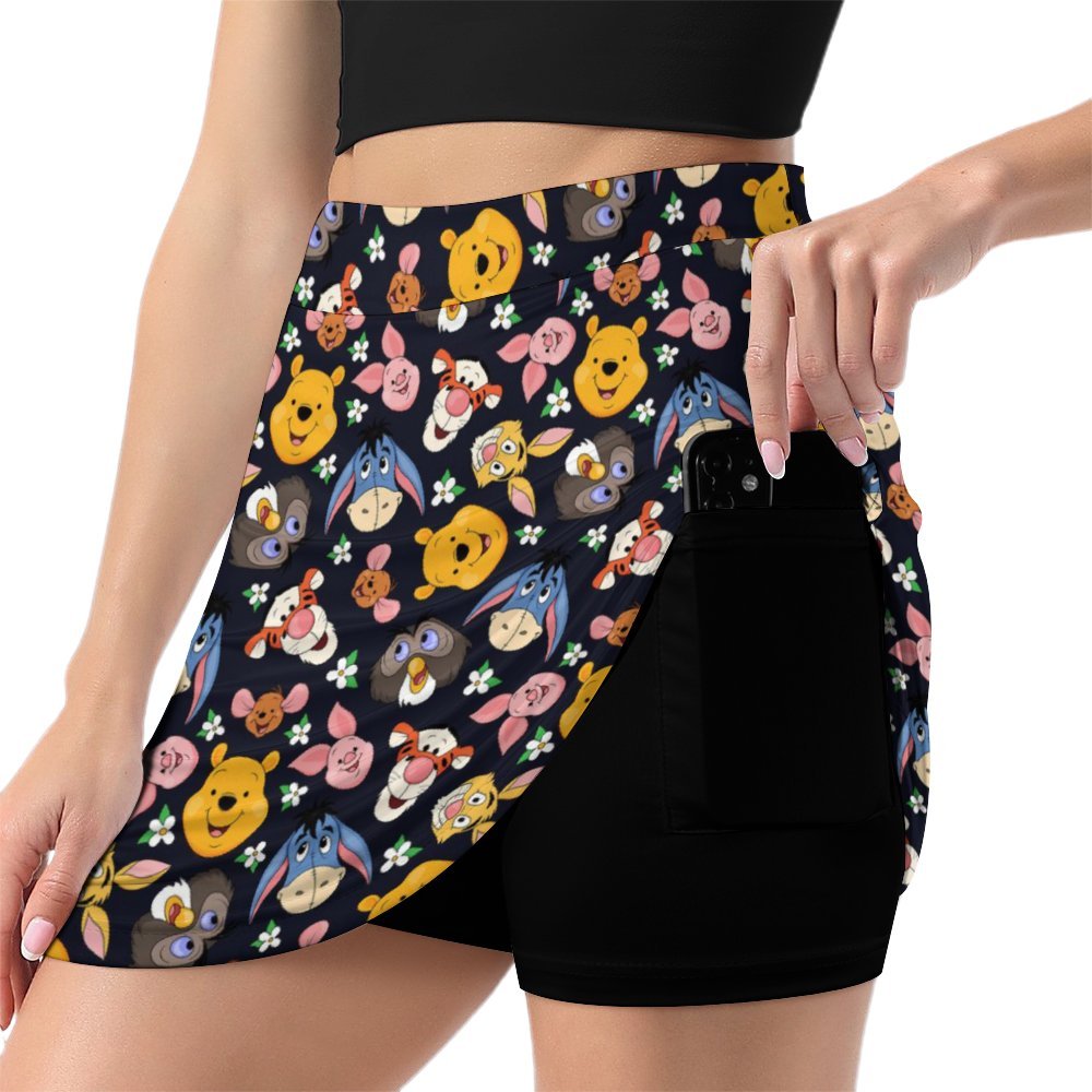 Disney Winnie The Pooh Hundred Acre Wood Friends Athletic A-Line Skirt With Pocket Solid Shorts