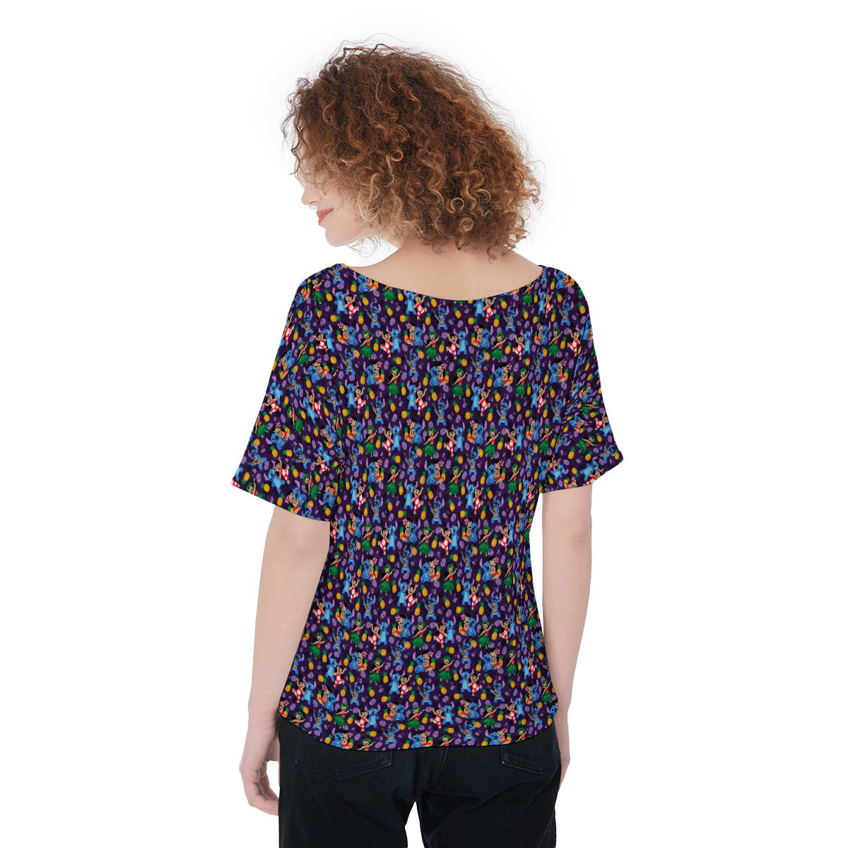 Introducing our Disney-inspired Women's All Over Print T-Shirt, a perfect blend of classic summer style and enchanting Disney charm. This delightful top features a vibrant, all-over Disney print that brings a touch of magic to your wardrobe.