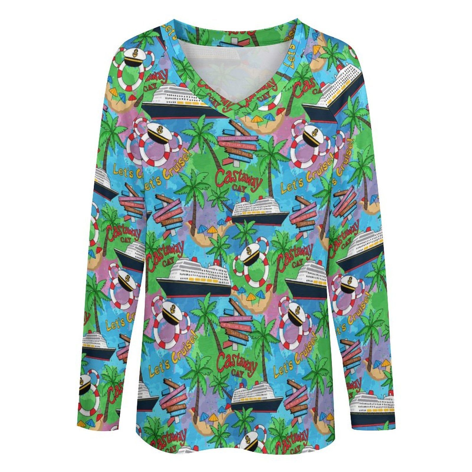 Let's Cruise Long Sleeve Loose V-Neck Tee