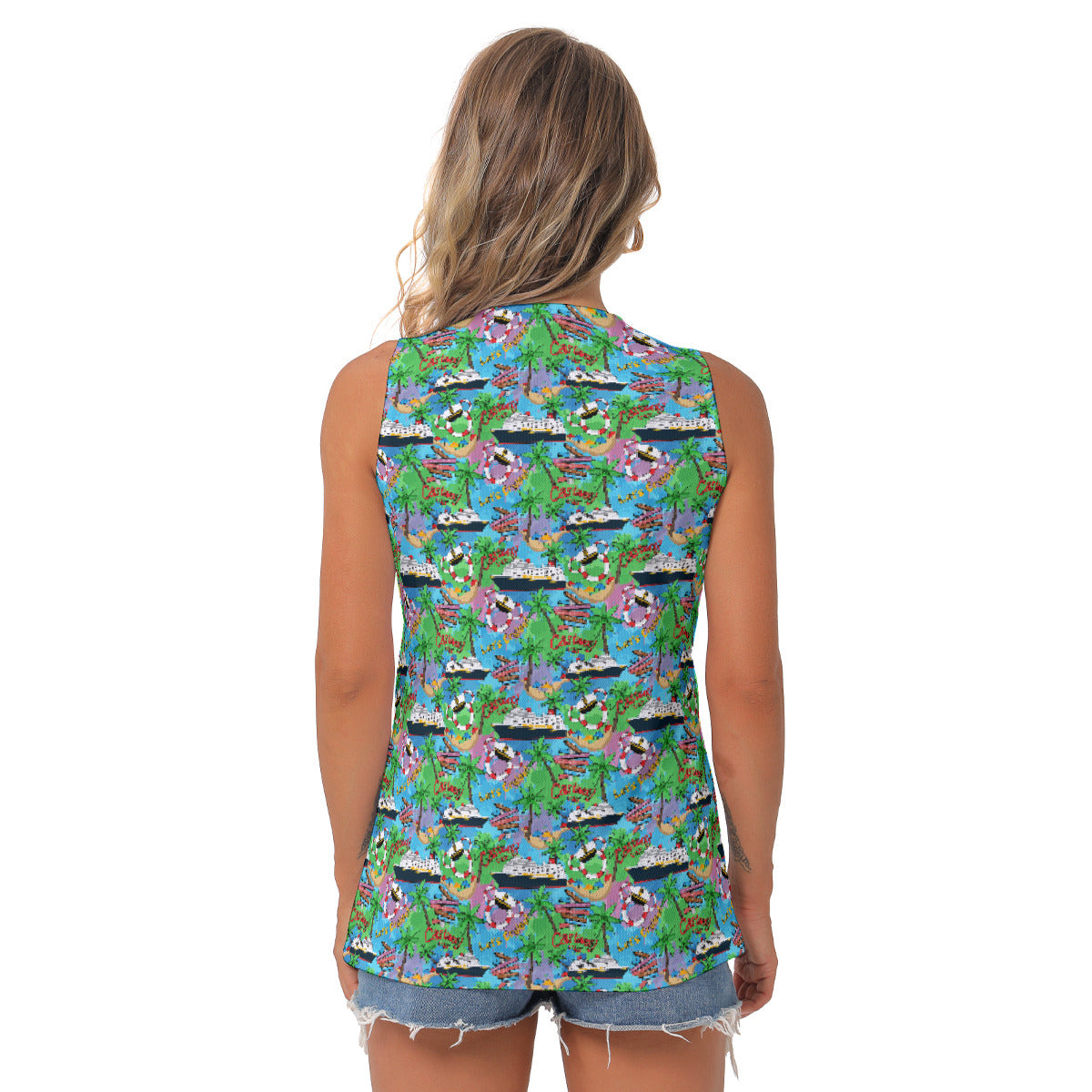 Introducing our Disney-inspired Women's Sleeveless V-Neck Top—a charming blend of style and comfort, perfect for both your magical adventures in the parks and everyday wear at home. Crafted from soft, breathable fabric, this top features a flattering V-neckline and a sleeveless design, keeping you cool and comfortable on warm days. The whimsical Disney-inspired print adds a touch of enchantment, making it a delightful addition to your wardrobe. Available in sizes S-2XL, this top is versatile enough to pair with your favorite jeans, shorts, or skirts for a fun, casual look. Whether you're strolling down Main Street or relaxing at home, this top is your go-to for effortless Disney style.