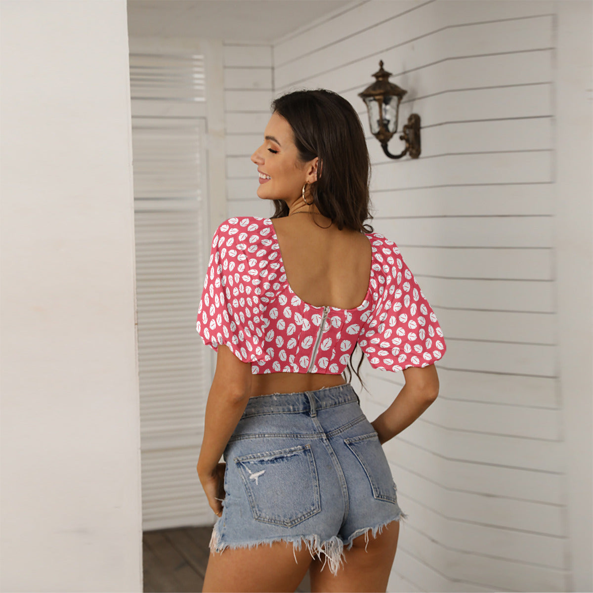 Lilo's Dress Women's Square Collar Cropped Top With Puff Sleeve