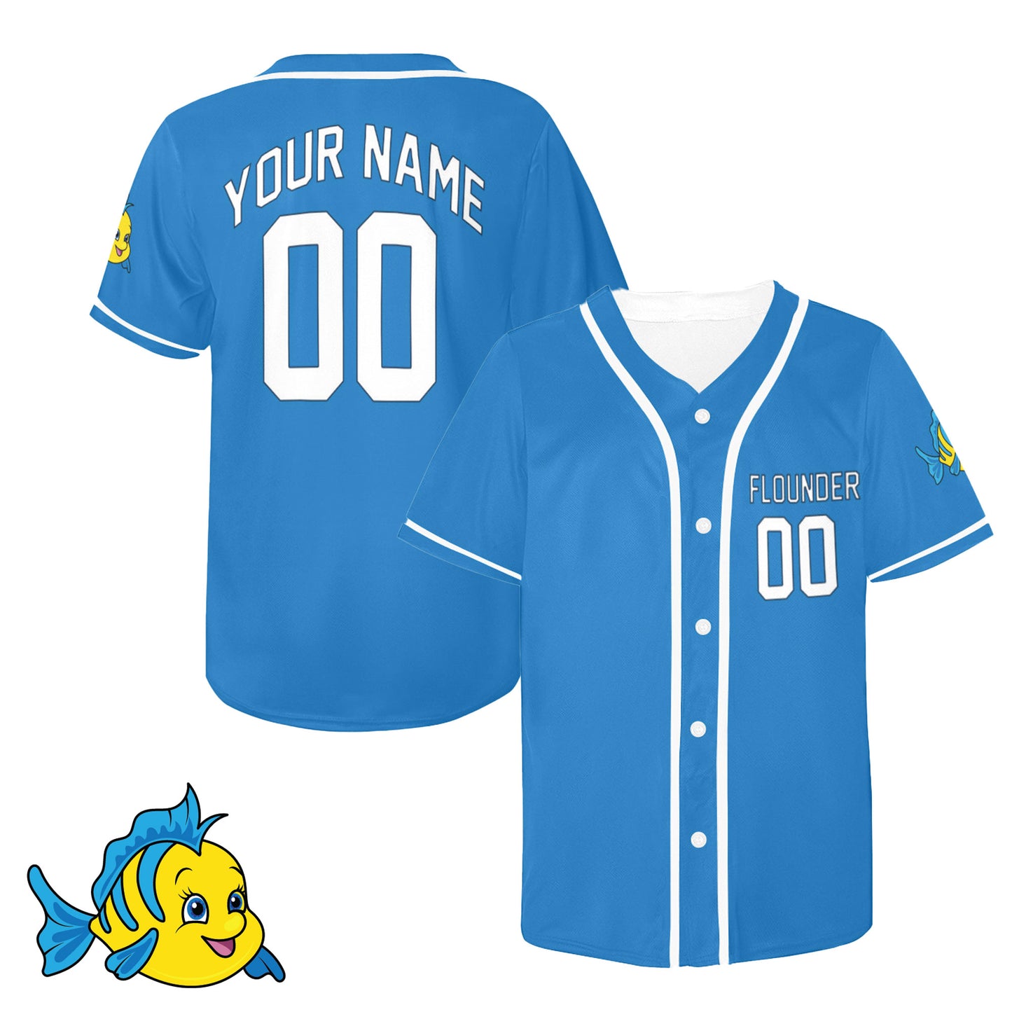 Little Mermaid Flounder Customizable Jersey (Adults And Kids Sizes)