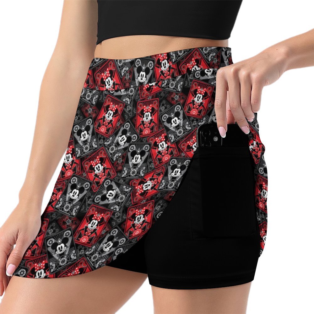 Mickey And Minnie Steamboat Cards Athletic A-Line Skirt With Pocket Solid Shorts