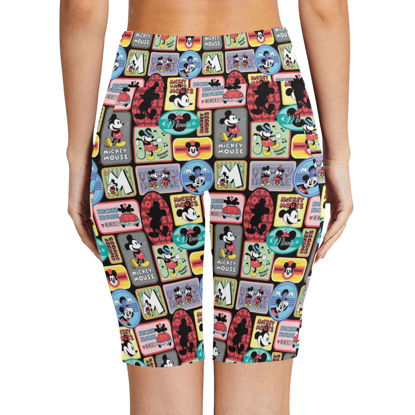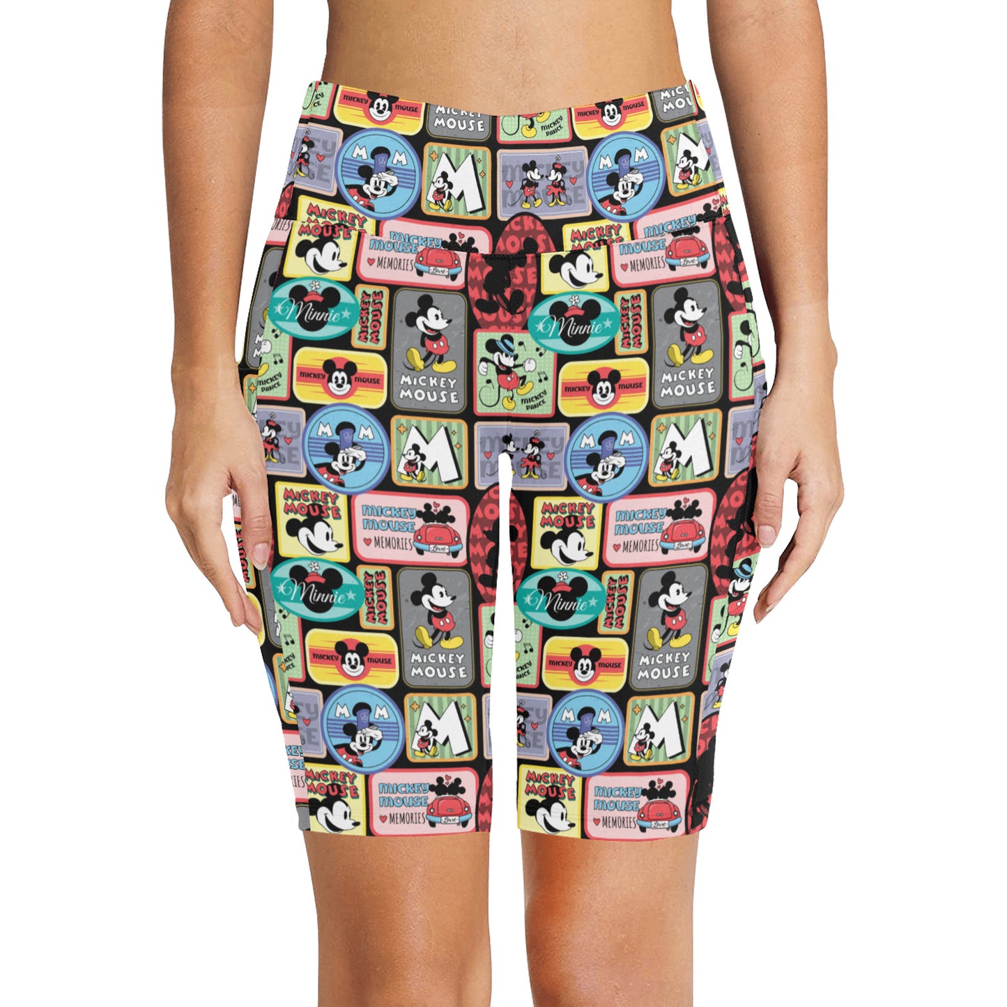 Mickey Stickers Women's Athletic Workout Half Tights Leggings With Side Pockets