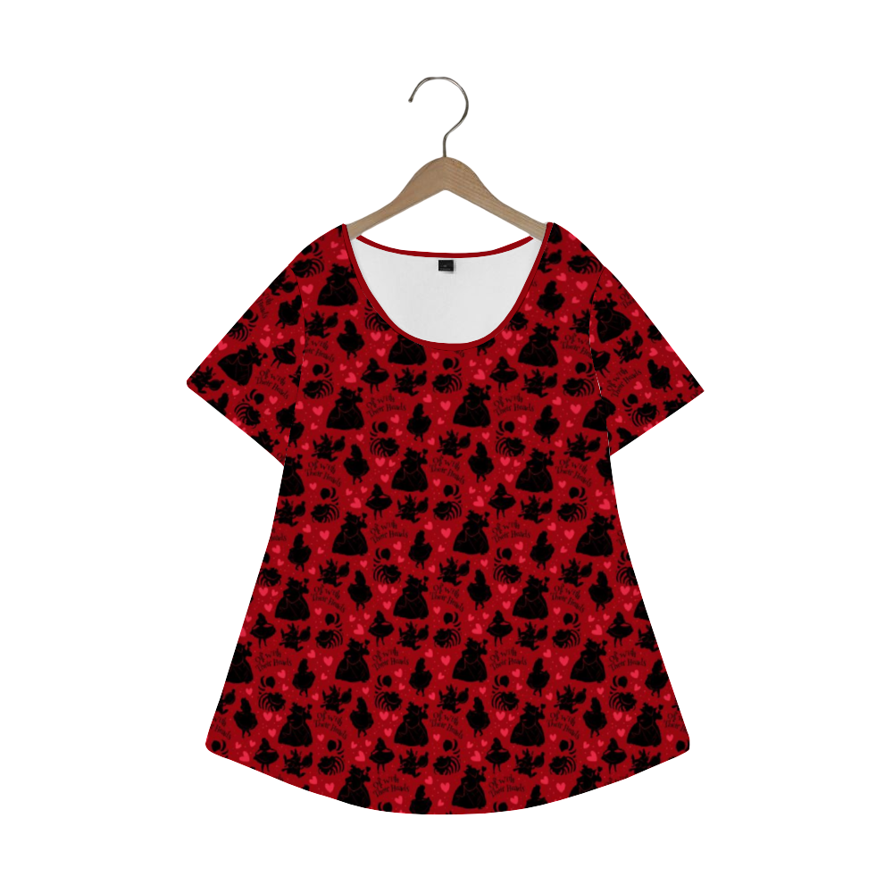 Disney Alice In Wonderland Queen Of Hearts Off With Their Heads Women's Crew Neck Loose Tunic