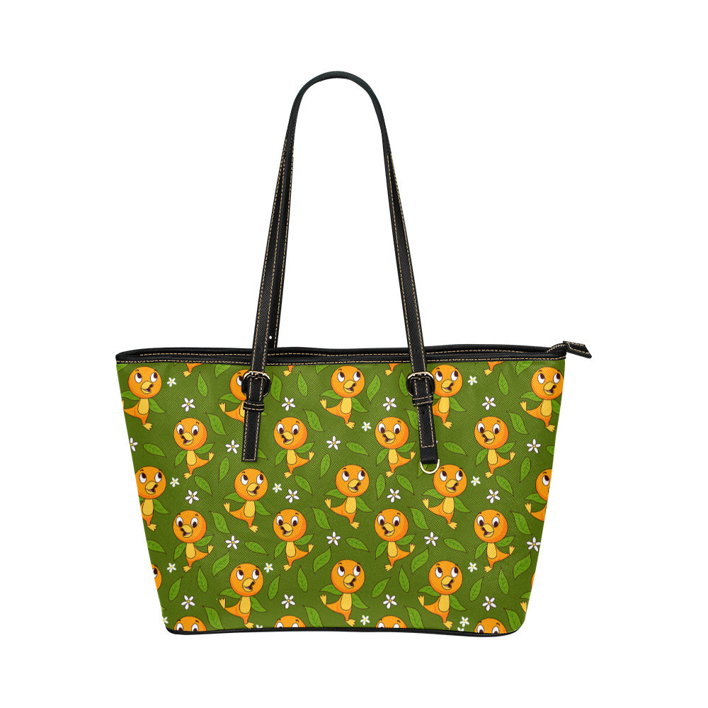 Orange Bird Leather Tote Bag
