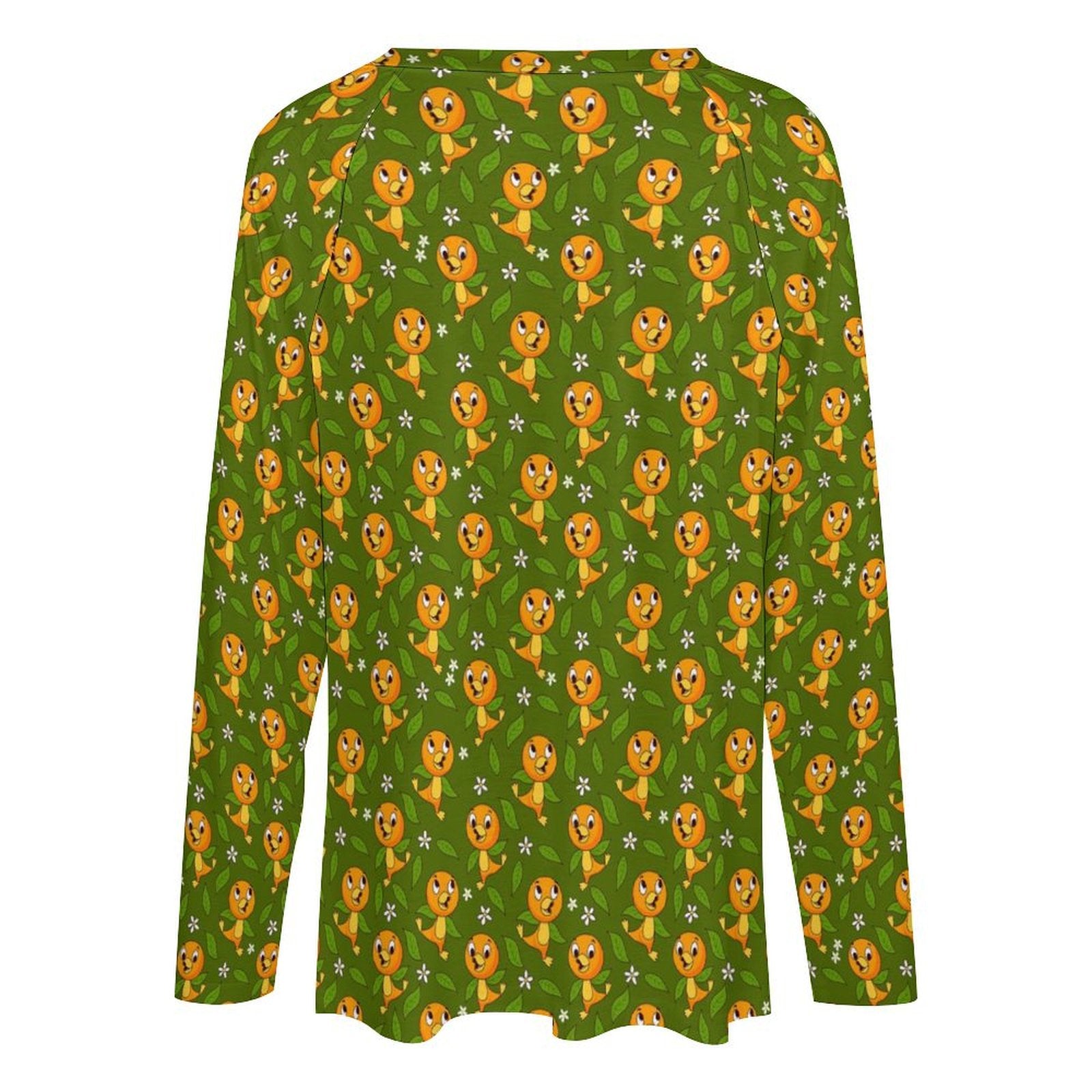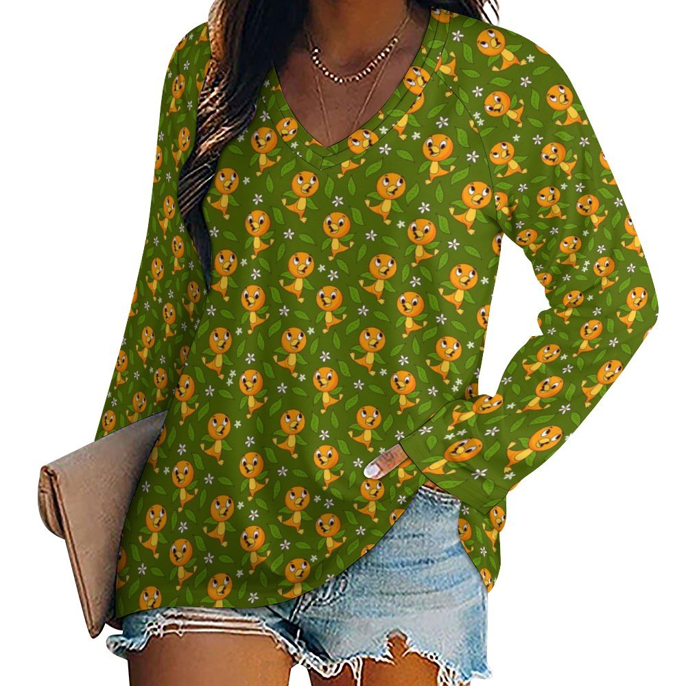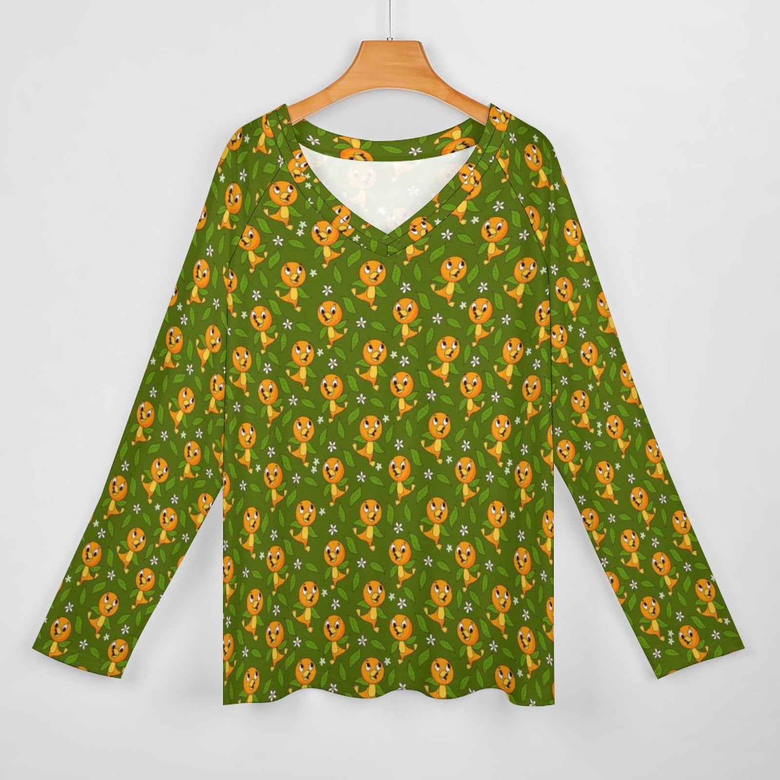 Orange Bird Long Sleeve Loose V-Neck Tee