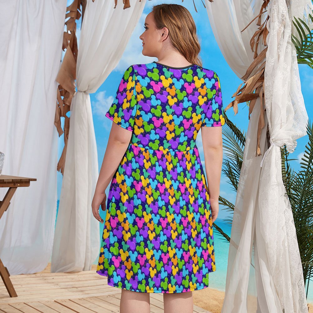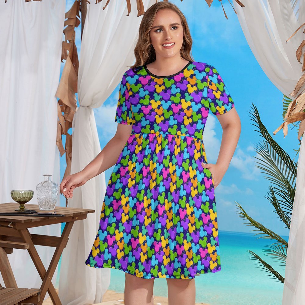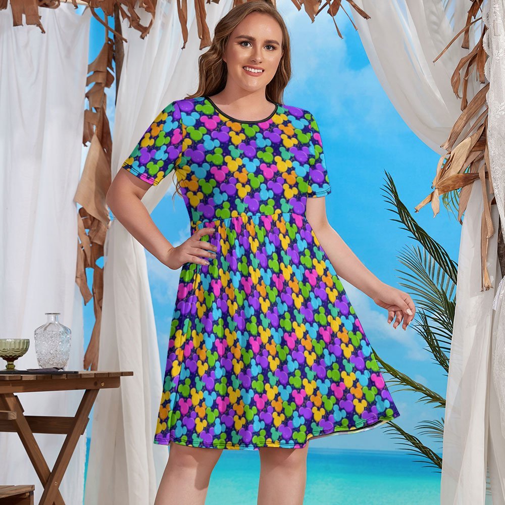 Introducing the enchanting Disney-inspired plus-size round neck knee-length dress – a perfect blend of magic, comfort, and style! Crafted with the utmost care and attention to detail, this delightful dress is designed to make every wearer feel like a true princess.