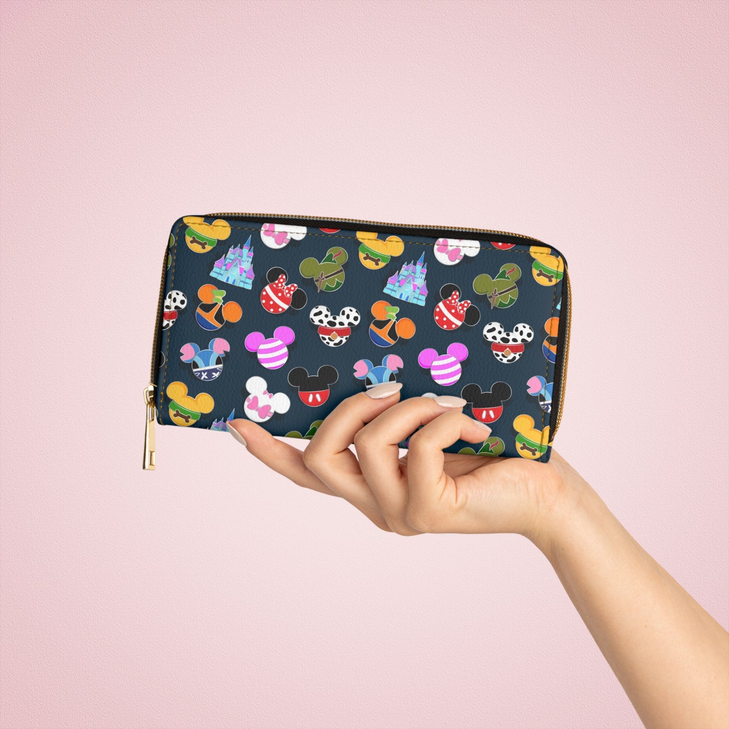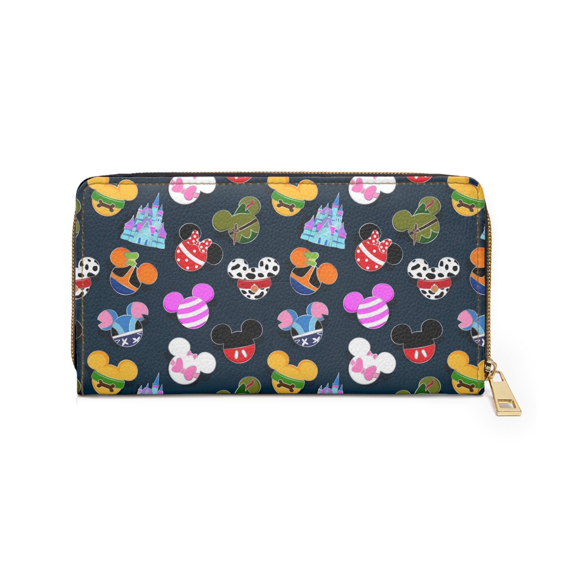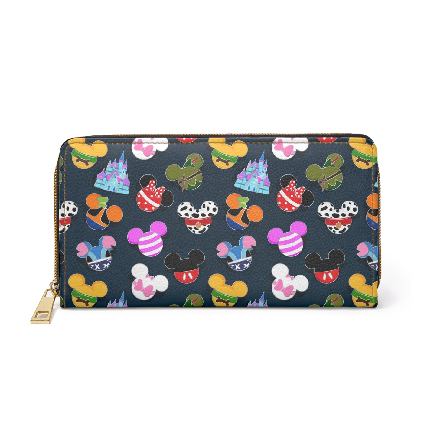 .: Material: Cruelty-free faux leather .: Durable high-quality nylon zip and alloy hardware .: Gold color thread stitching .: Pockets for cash, credit cards, coins, and checkbook .: One size: 7.87" x 4.33" (20cm x 11cm)
