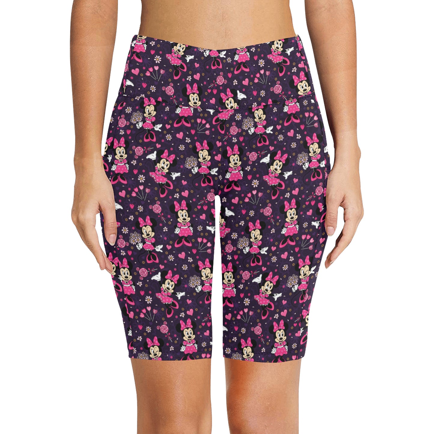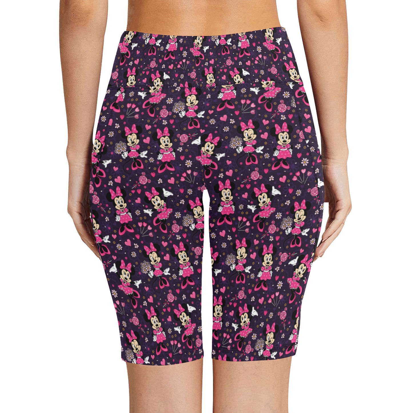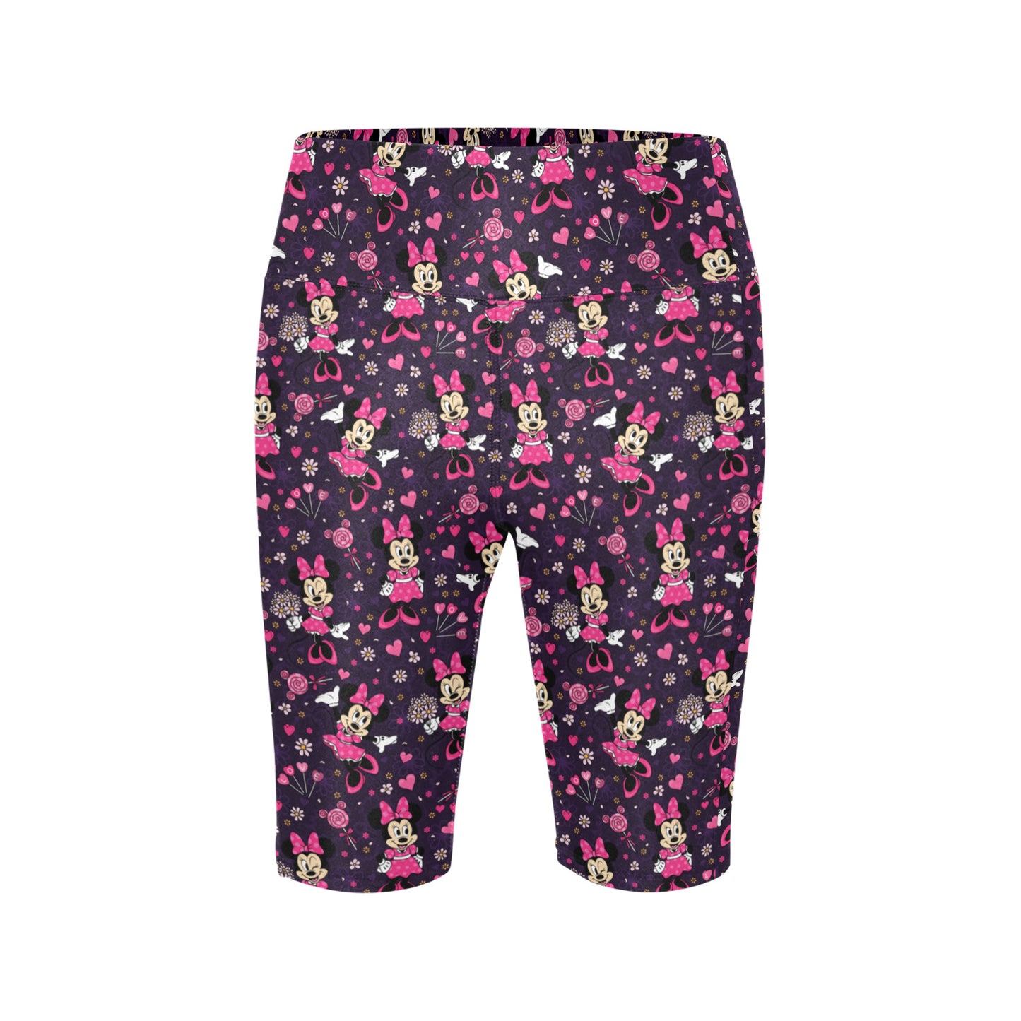 Pink Minnie Women's Athletic Workout Half Tights Leggings With Side Pockets