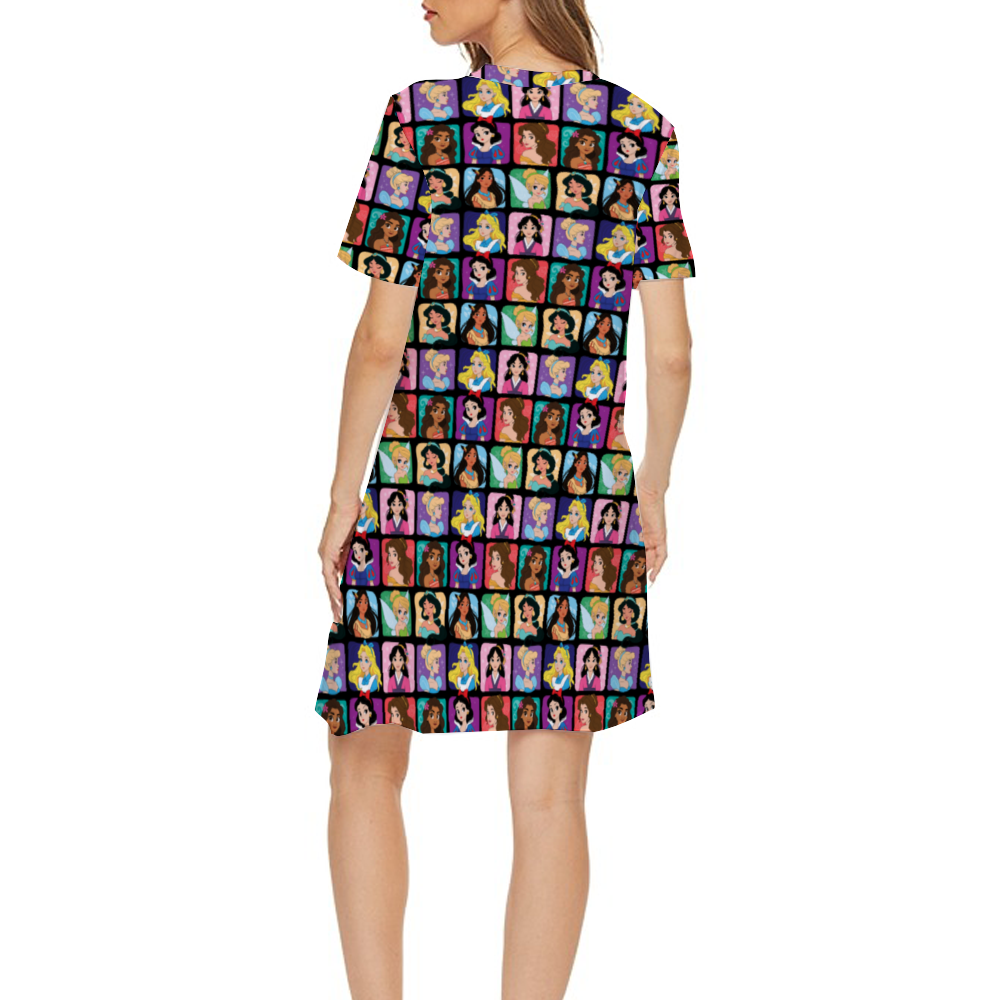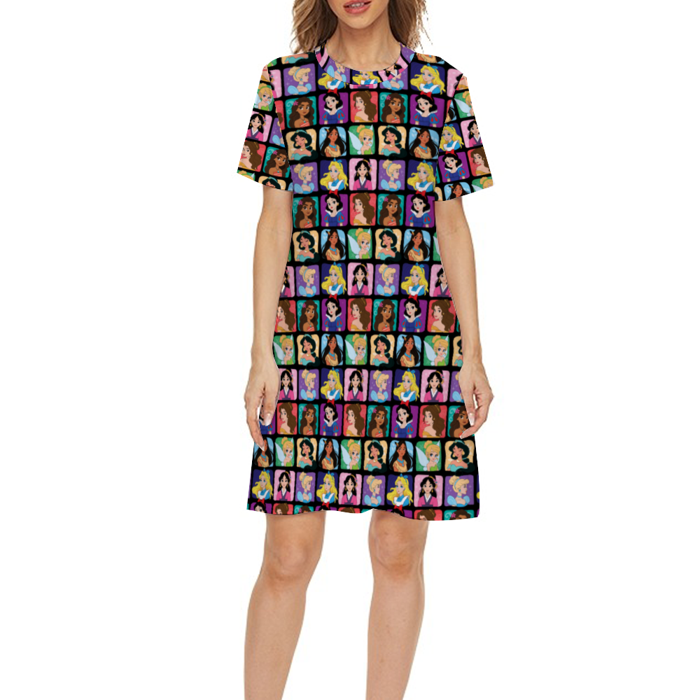 Introducing the enchanting Disney-inspired women's short-sleeved dress, where fantasy meets fashion in a delightful harmony. This dress embodies the essence of beloved Disney characters, bringing to life the magic and charm that have captured hearts for generations.