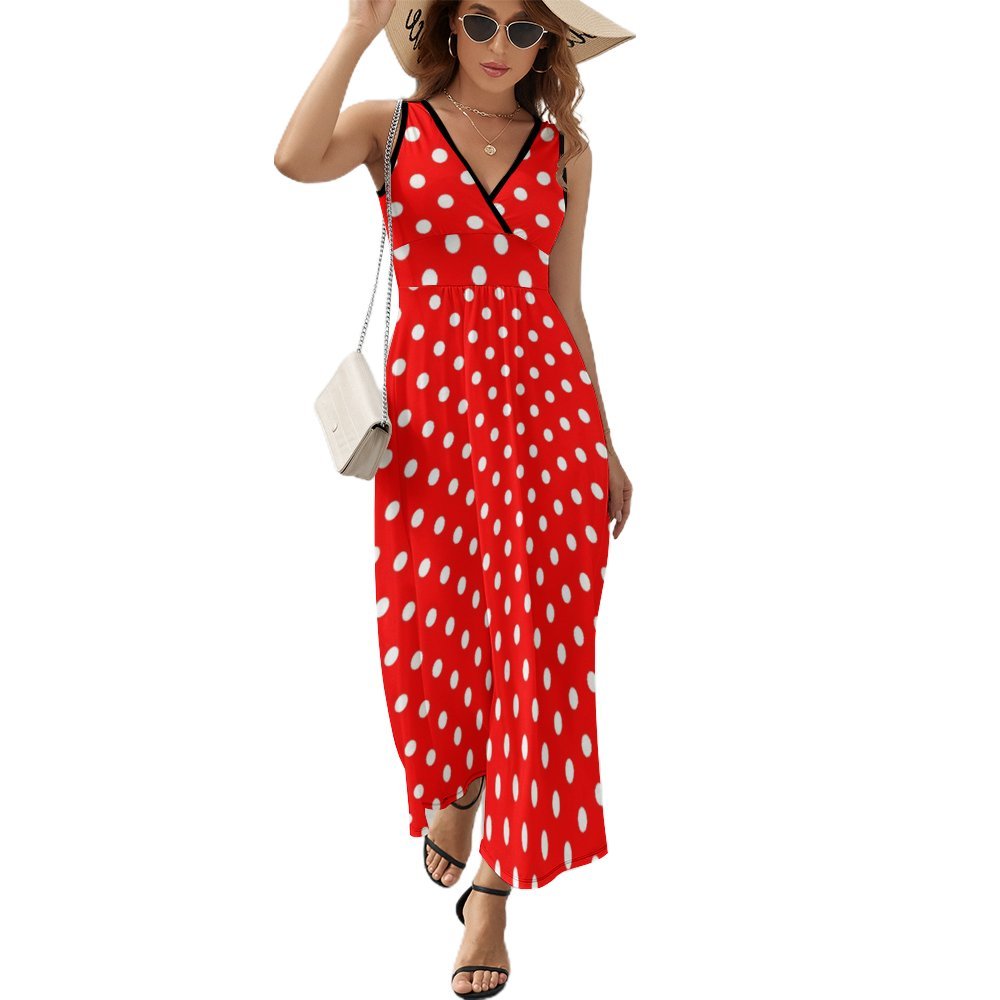 Red With White Polka Dots Women's Long Sleeveless Dress