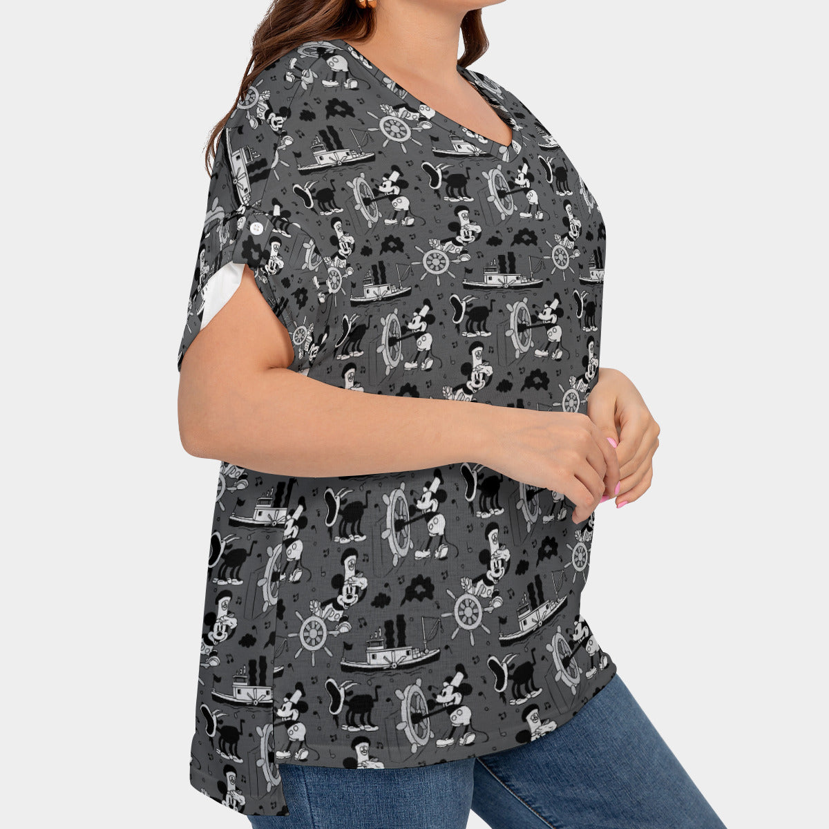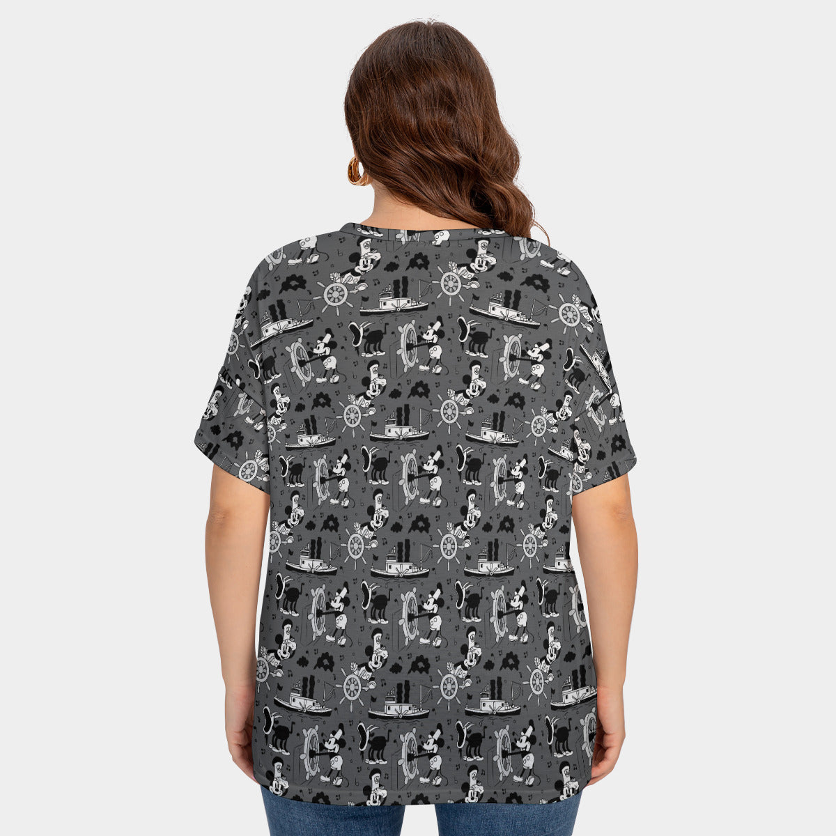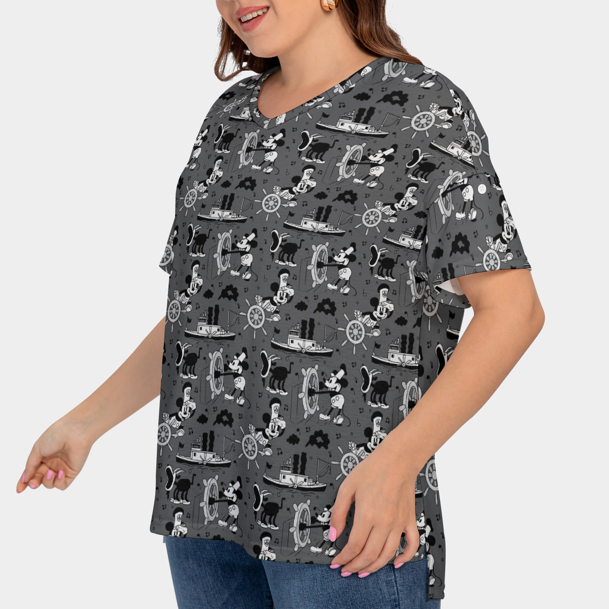 Steamboat Mickey Women's Plus Size Short Sleeve T-shirt With Sleeve Loops
