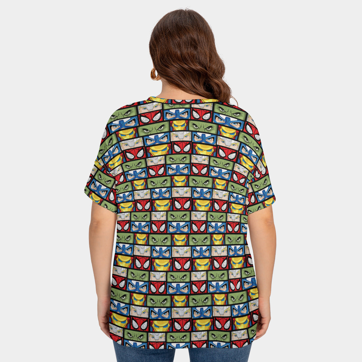 Super Heroes Eyes Women's Plus Size Short Sleeve T-shirt With Sleeve Loops