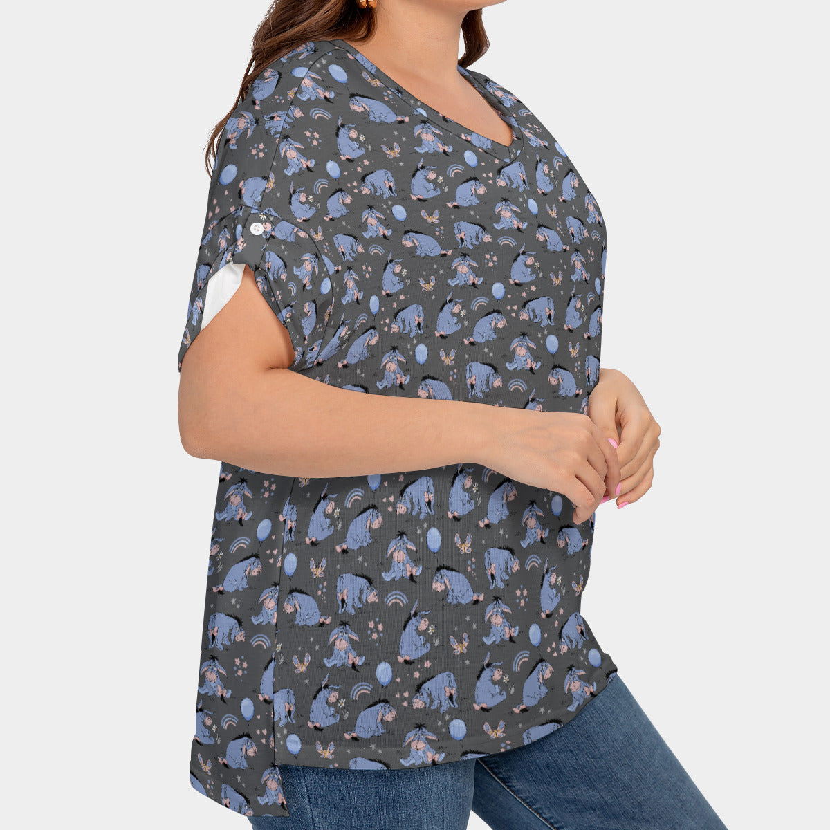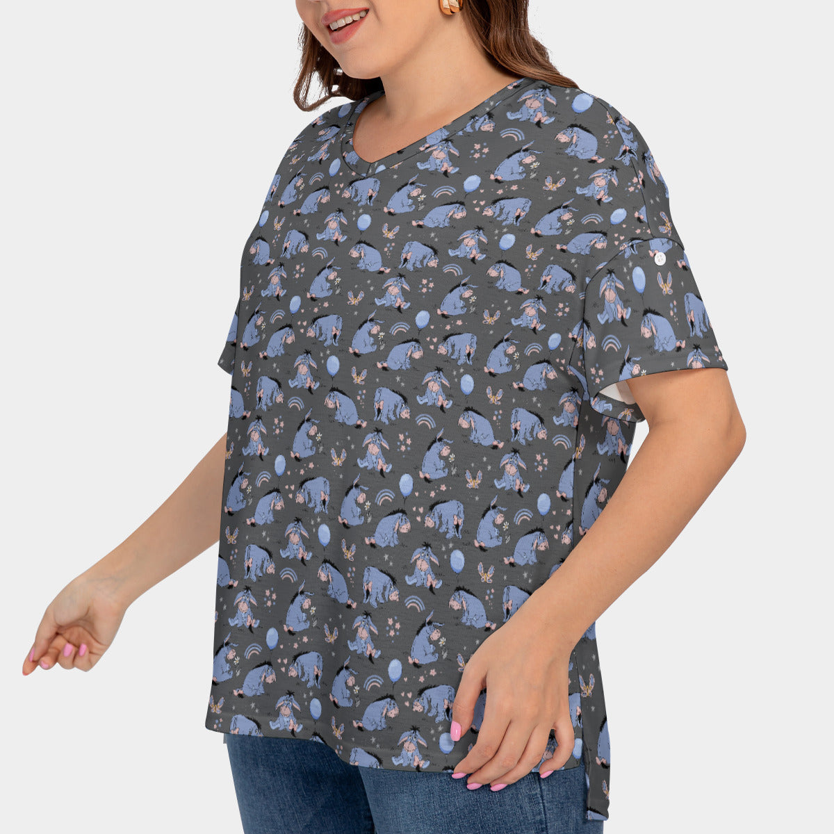 Introducing the enchanting Disney-inspired Women's Plus Size Short Sleeve T-shirt With Sleeve Loops, designed to bring a touch of magic to your everyday wardrobe! Crafted with comfort and style in mind, this delightful tee is perfect for Disney enthusiasts who love to add a dash of whimsy to their fashion statement.