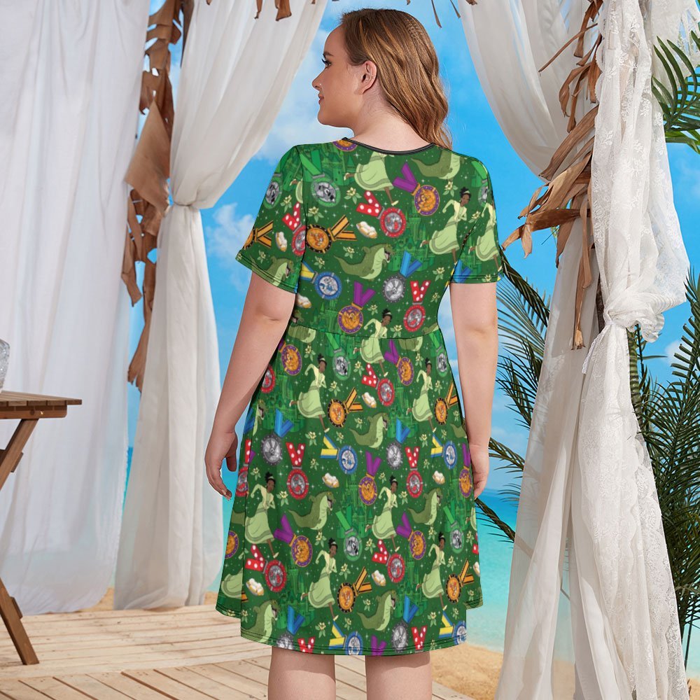 Introducing the enchanting Disney-inspired plus-size round neck knee-length dress – a perfect blend of magic, comfort, and style! Crafted with the utmost care and attention to detail, this delightful dress is designed to make every wearer feel like a true princess.