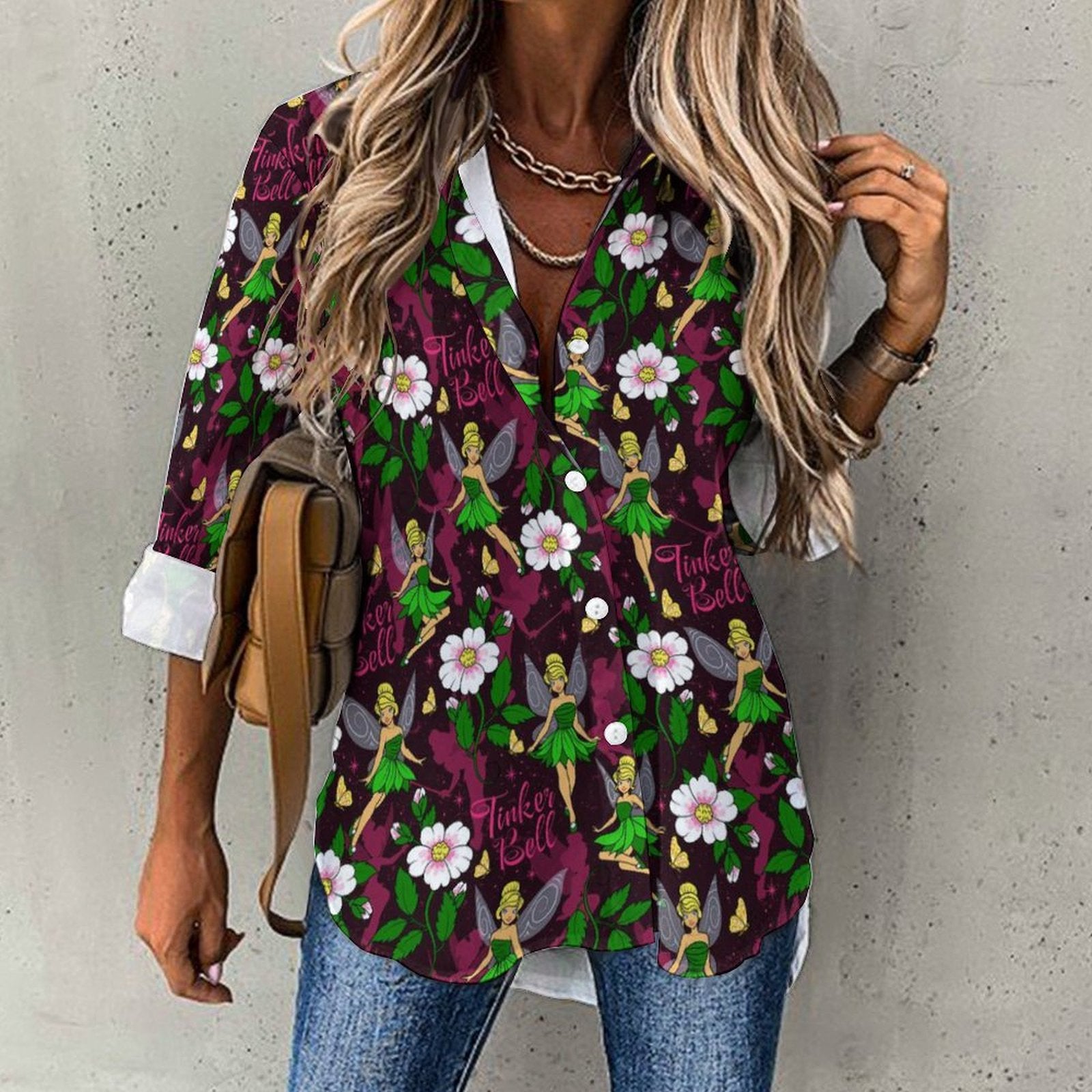 Tinker Bell Long Sleeve Button Up Blouse