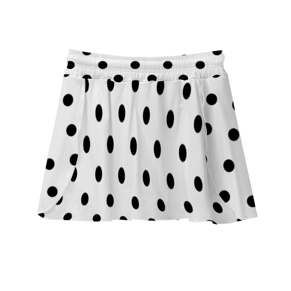 White With Black Polka Dots Athletic Skirt With Built In Shorts