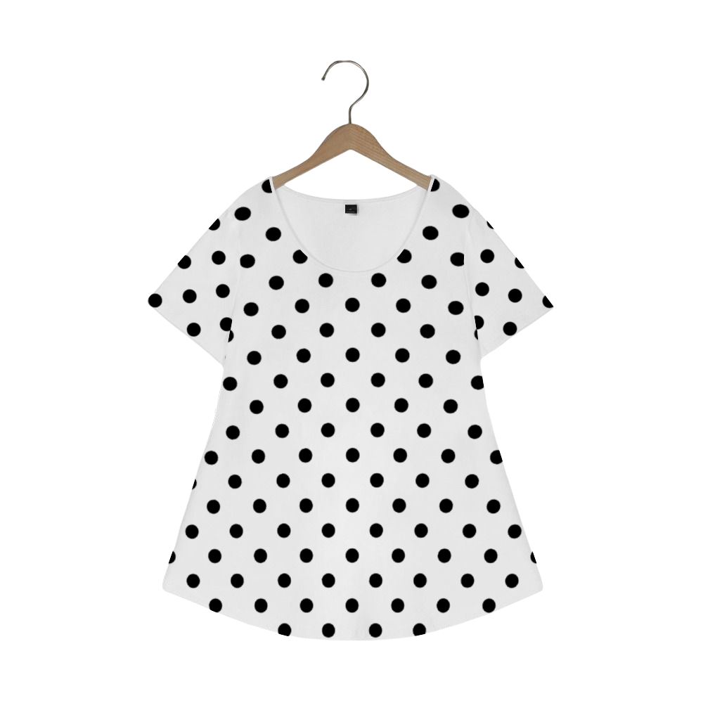 White With Black Polka Dots Women's Crew Neck Loose Tunic