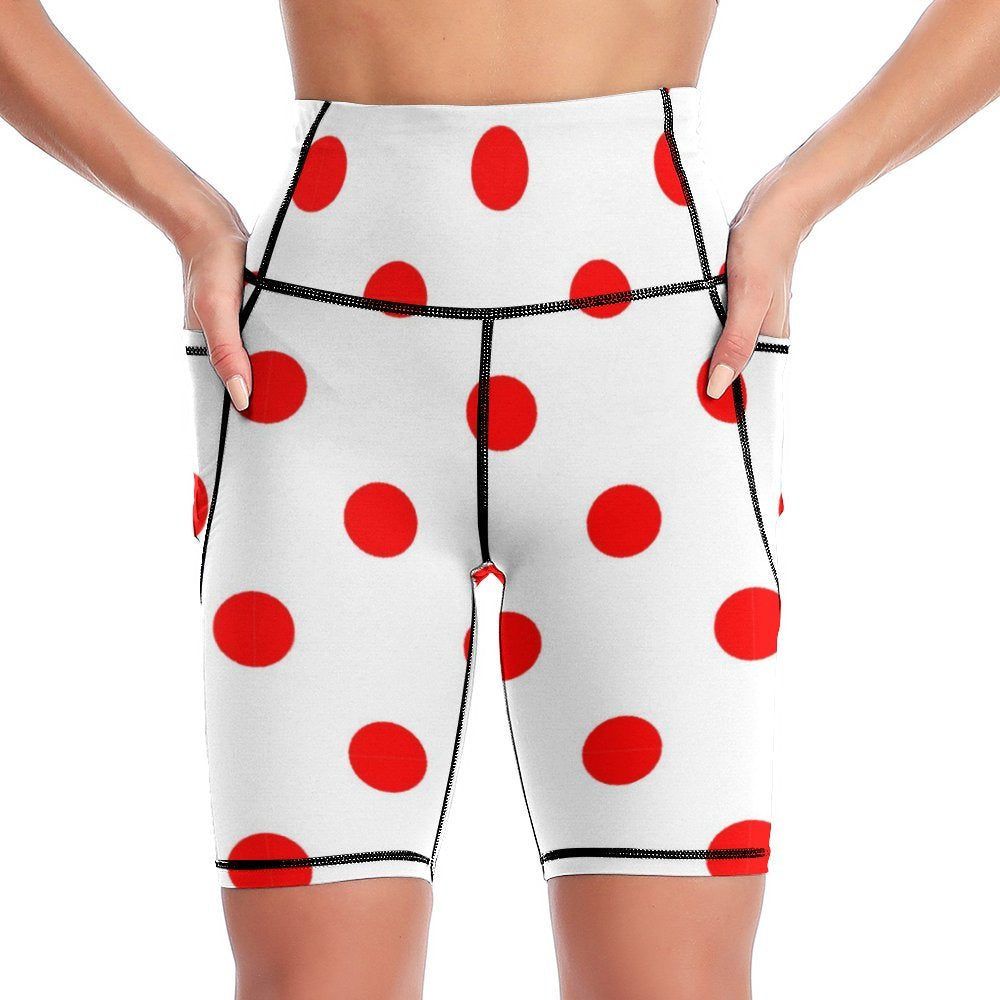 White With Red Polka Dots Women's Knee Length Athletic Yoga Shorts With Pockets